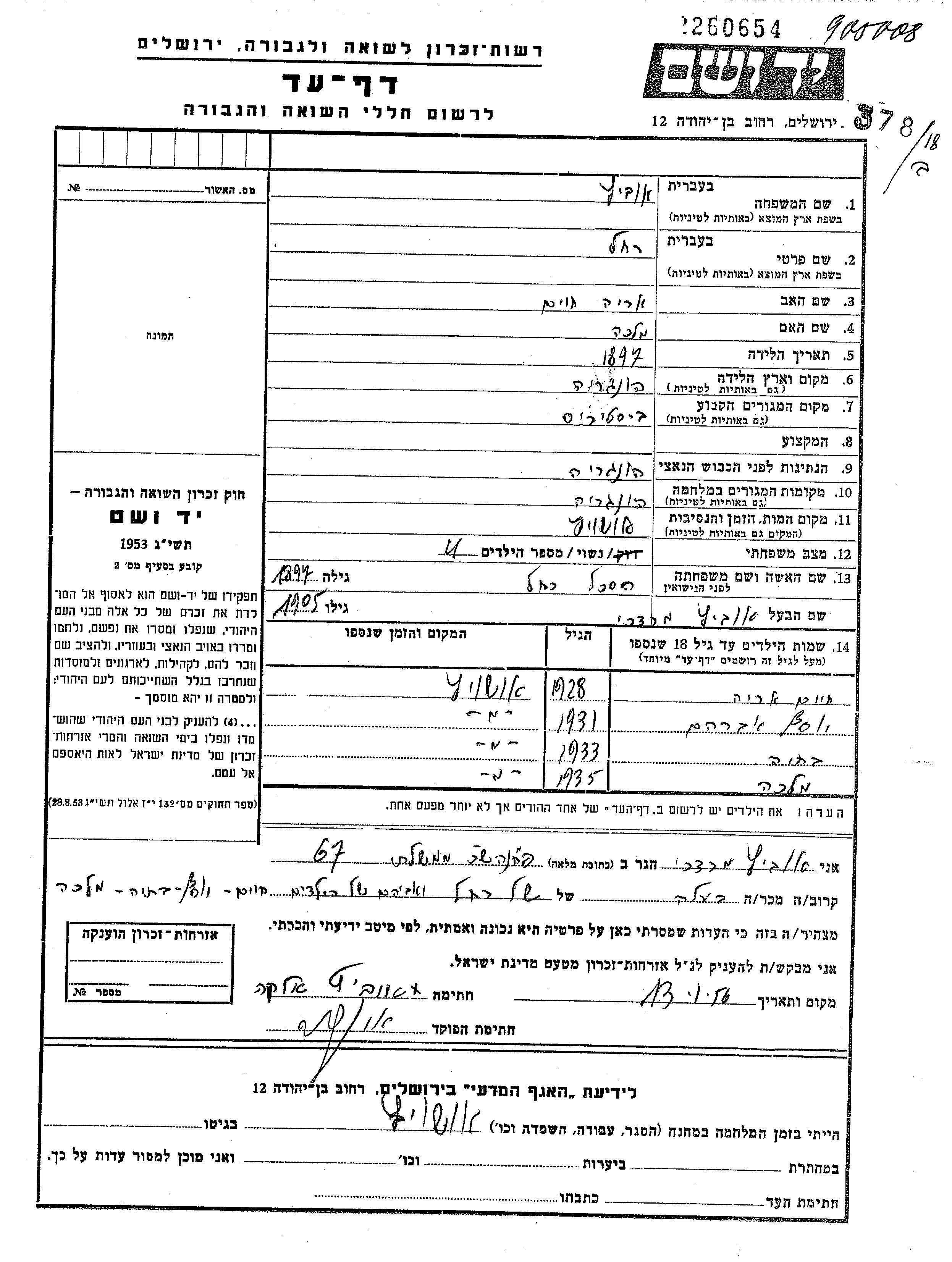 Rakhel wurde in der Schoah ermordet. Todesort: Auschwitz, Polen.