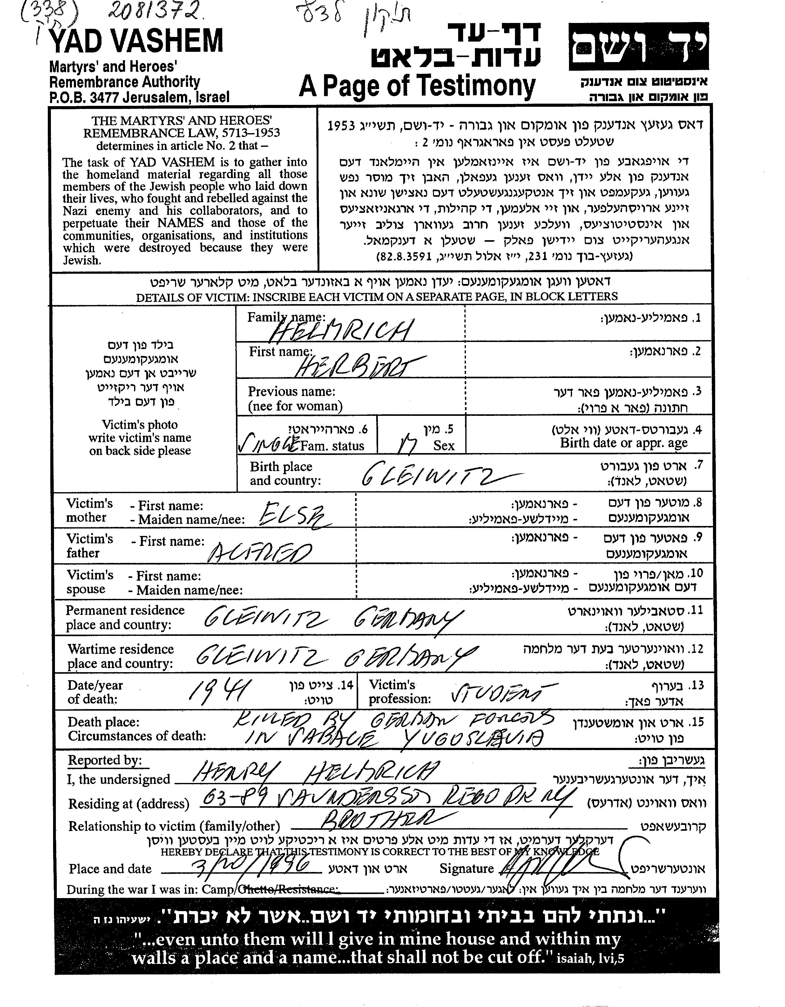 Suche nach einem Todesjahr im Zeitraum der Holocaust: 1933 bis 1945. Bitte wählen Sie 'Exakt' im Auswahlmenü, um nur nach einem einzelnen Jahr zu suchen, alternativ können Sie die flexibleren Optionen '+/- 2 Jahre' oder '+/- 5 Jahre' wählen.
