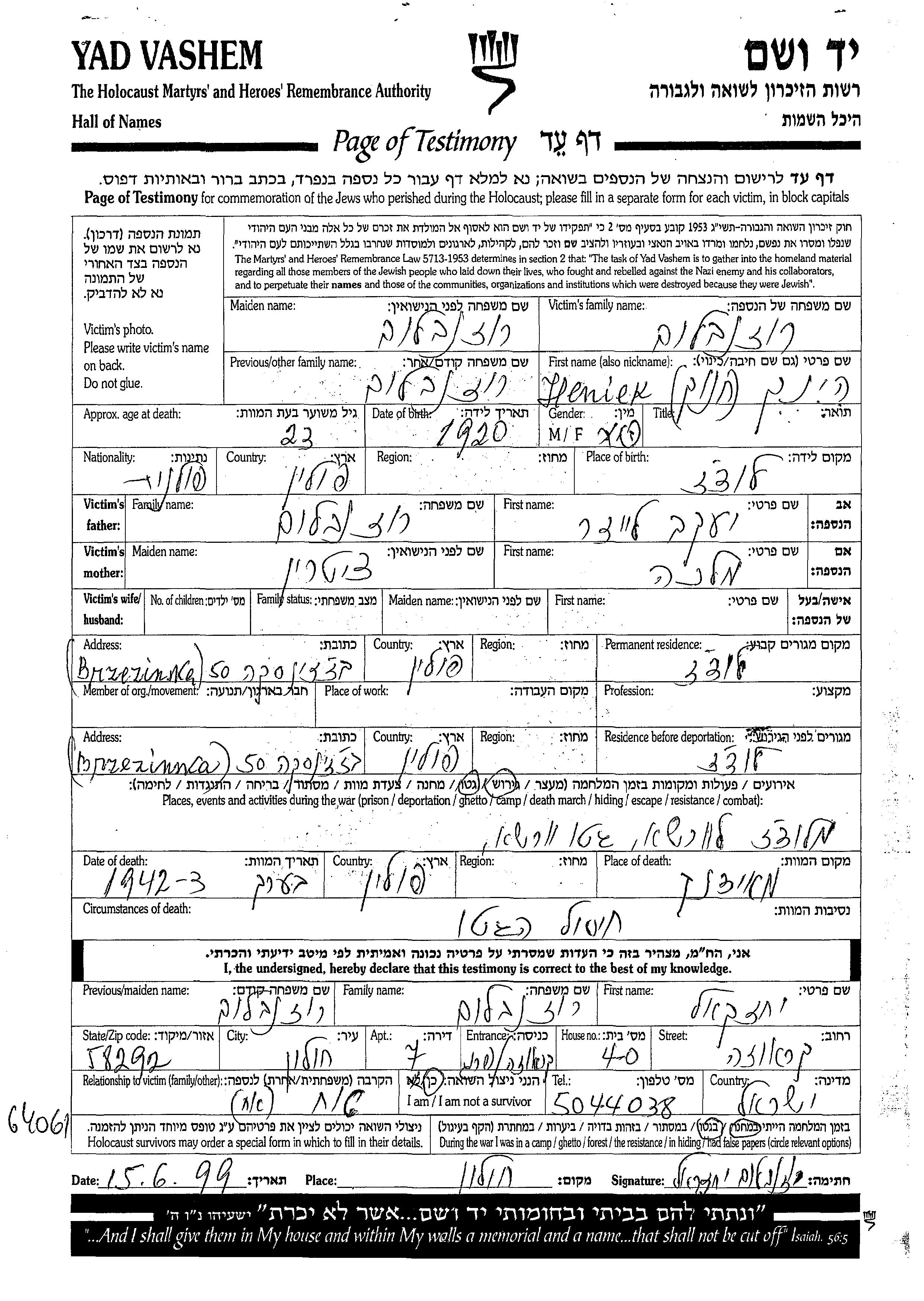Suche nach einem Todesjahr im Zeitraum der Holocaust: 1933 bis 1945. Bitte wählen Sie 'Exakt' im Auswahlmenü, um nur nach einem einzelnen Jahr zu suchen, alternativ können Sie die flexibleren Optionen '+/- 2 Jahre' oder '+/- 5 Jahre' wählen.