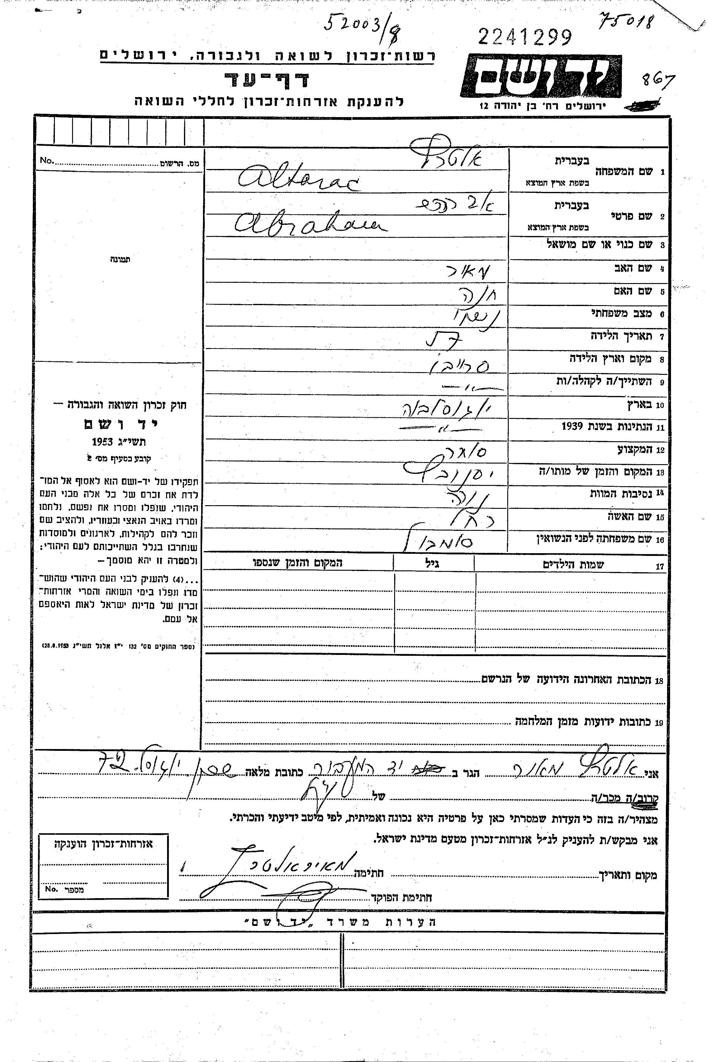 Ständiger Wohnsitz vor dem Krieg: Stadt/Ortschaft oder Bezirk/Region oder Land