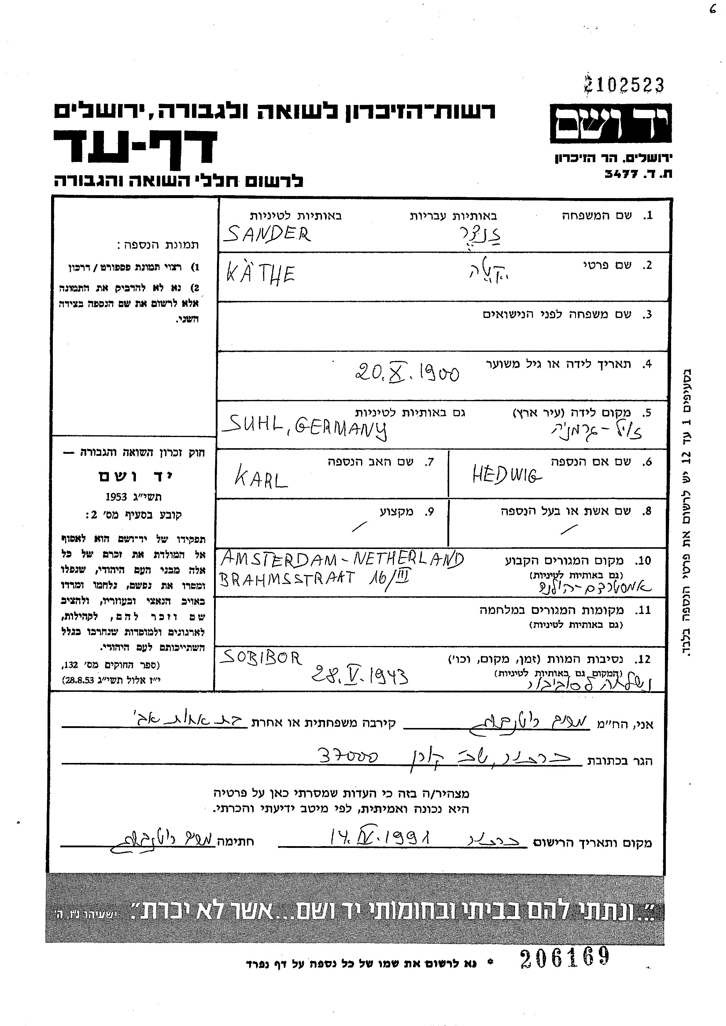 Sander Käthe 1900 Amsterdam, Niederlande Gedenkblatt