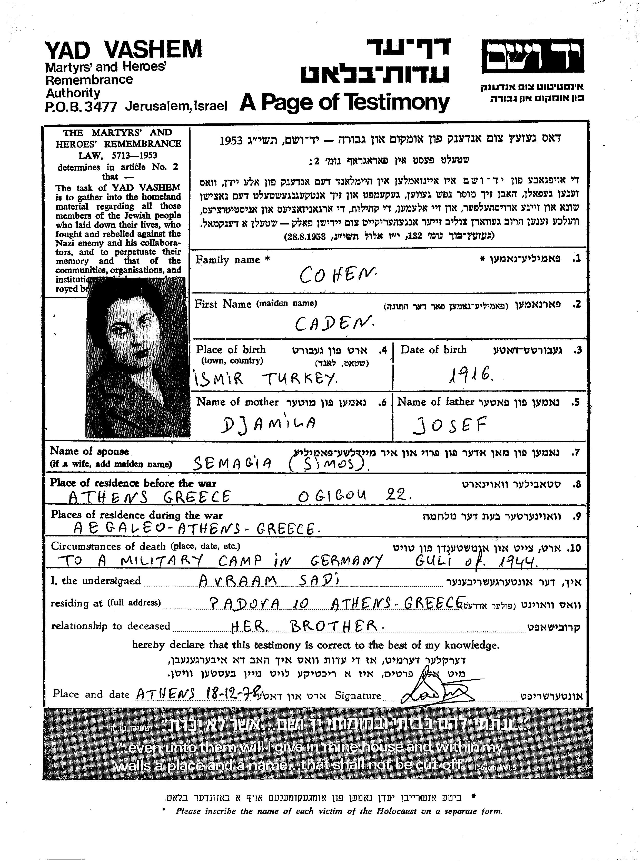 Cesza Kohen wurde im Jahr 1910 in Lodz, Polen geboren. Vor dem Zweiten Weltkrieg lebte sie in Lodz, Polen.