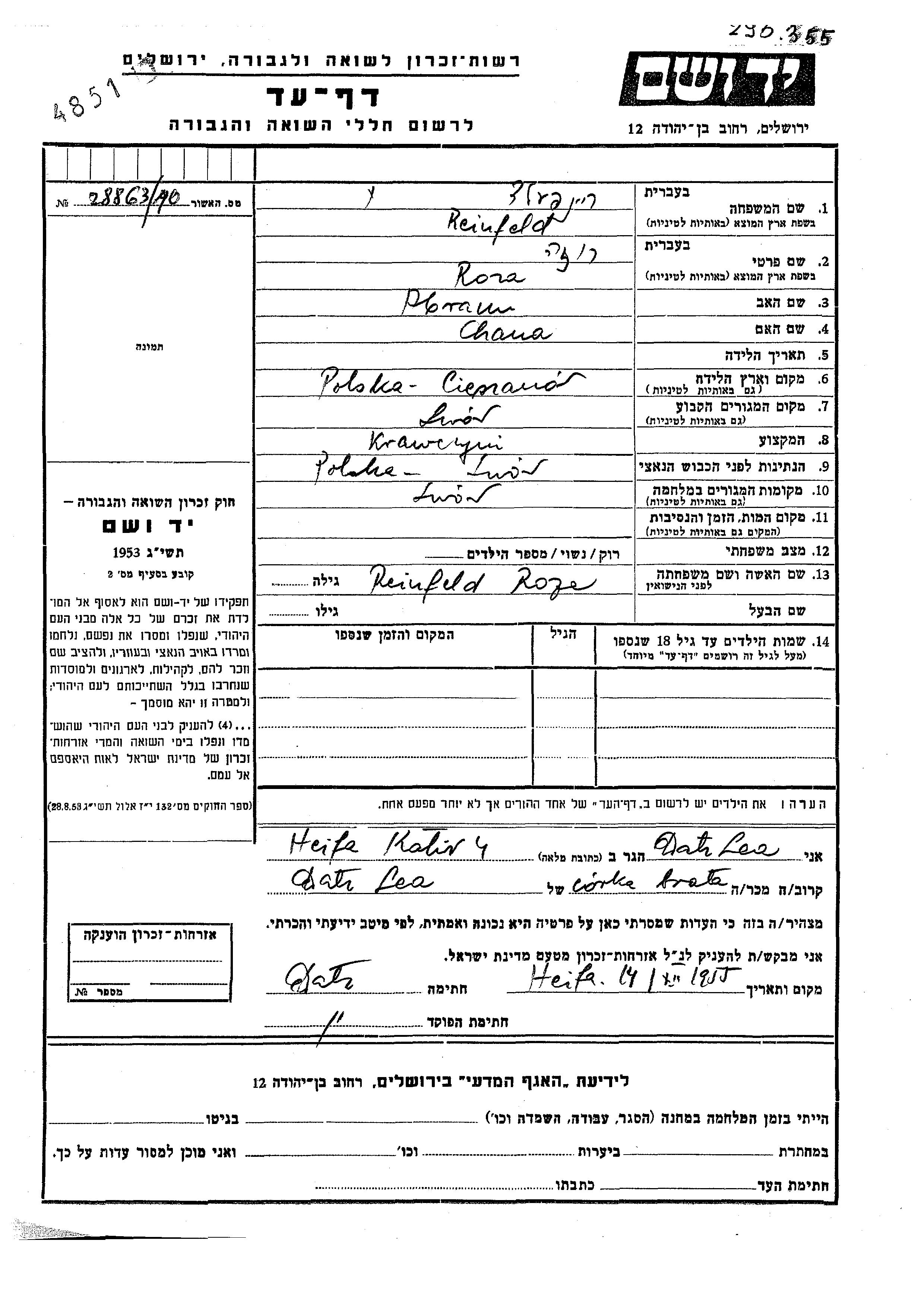 Roza wurde in der Schoah ermordet. Todesort: Lwow, Polen.