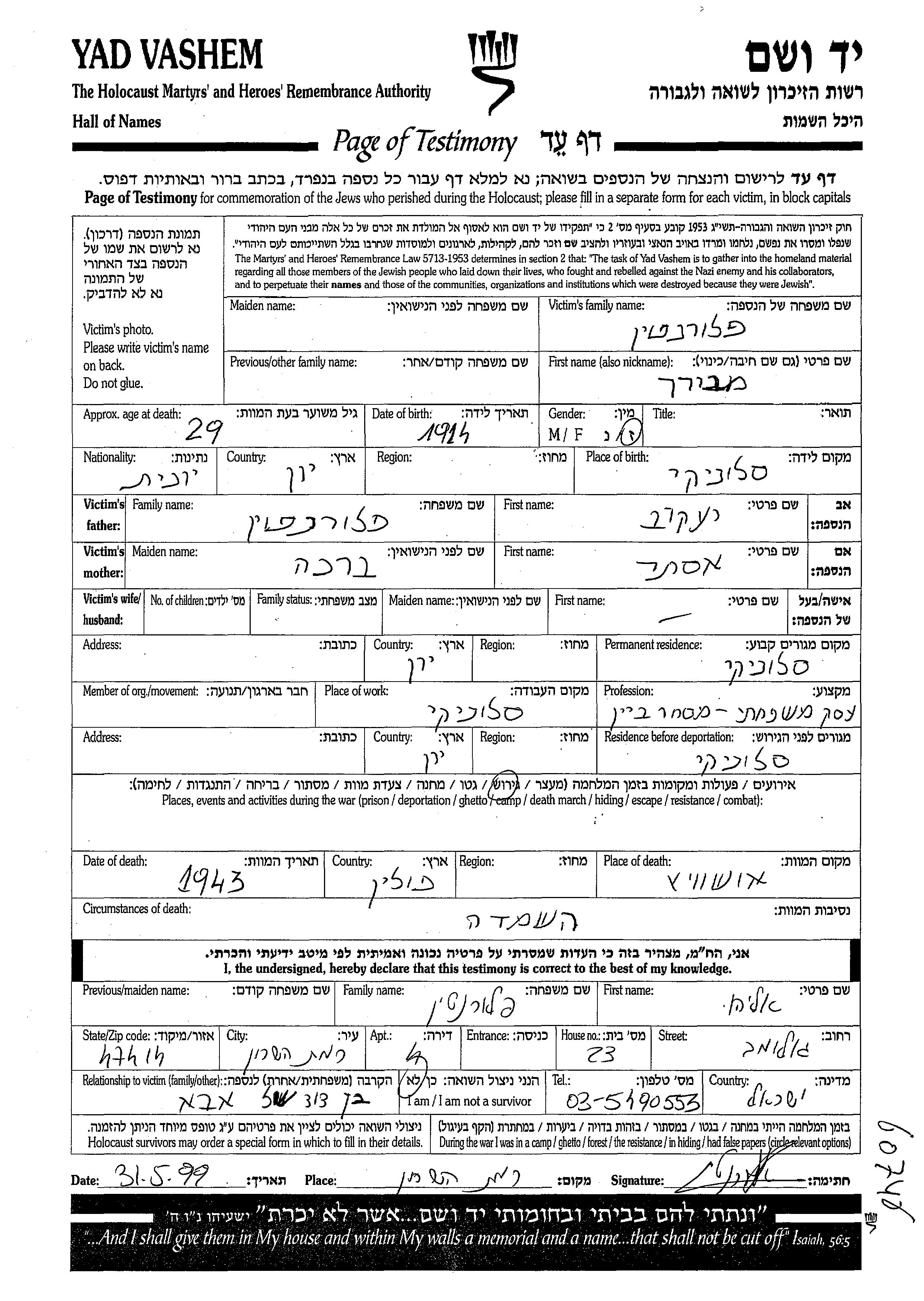| Florentin | Mevorakh | 1914 | Saloniki, Griechenland | Gedenkblatt |