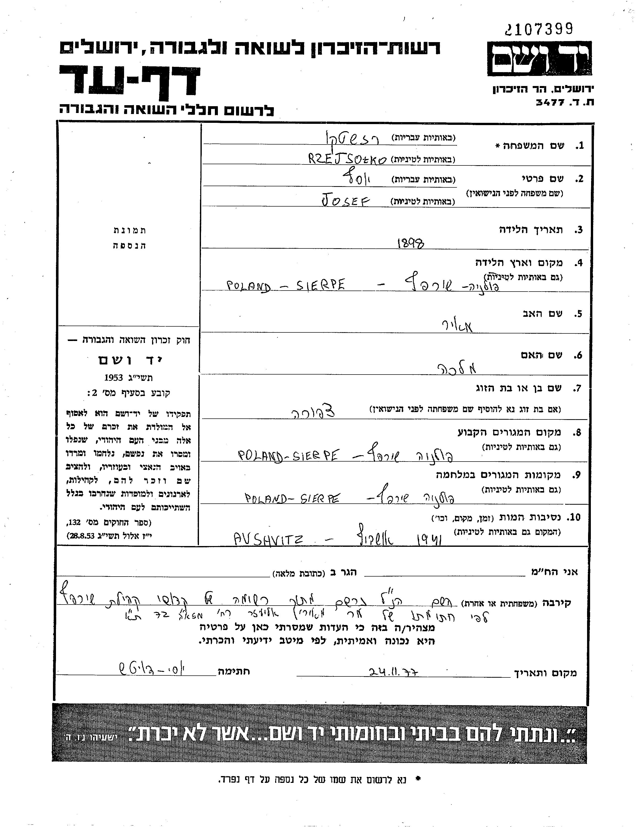 Reshetko | Yosef | Sierpc, Polen | Liste ermordeter Juden aus Gedenkbuechern (Yizkor Books) | |