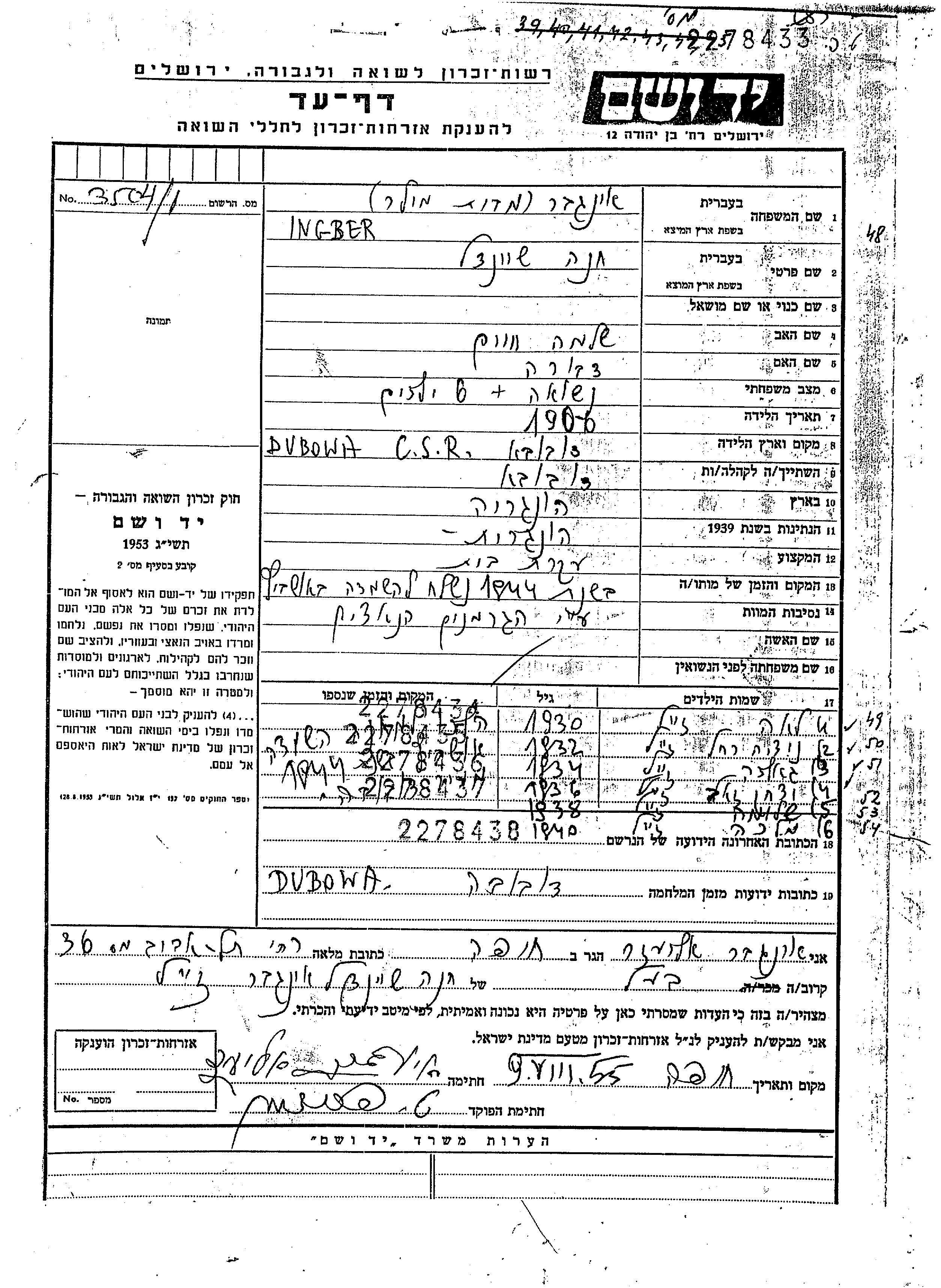 Lea Ingber wurde im Jahr 1930 geboren. Vor dem Zweiten Weltkrieg lebte sie in Dubova, Tschechoslowakei.