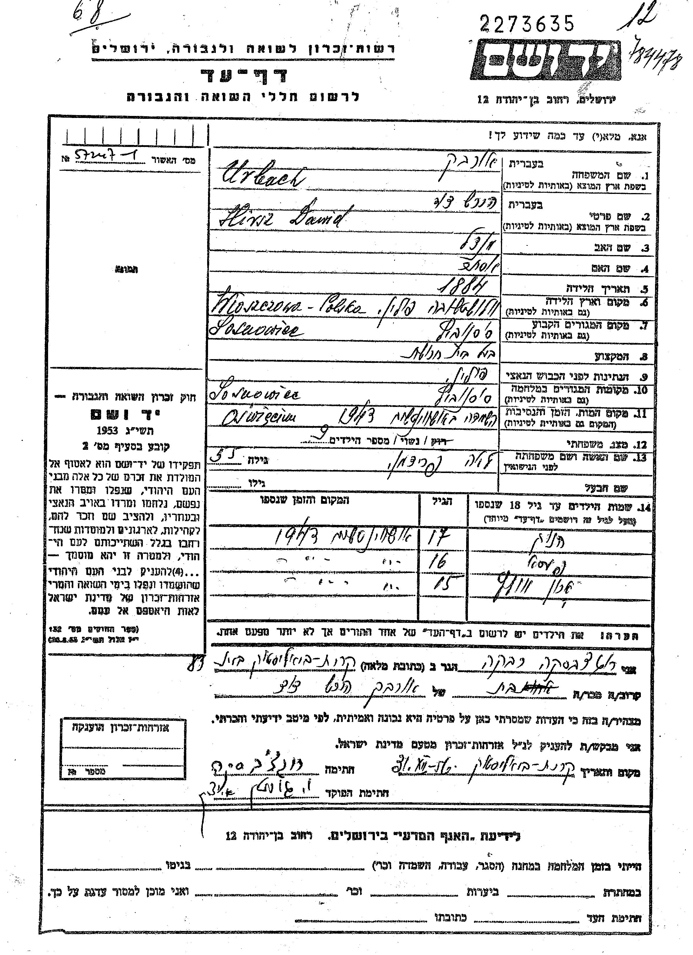 David Hirsh wurde in der Schoah ermordet. Todesort: Auschwitz, Polen im Jahr 1943.