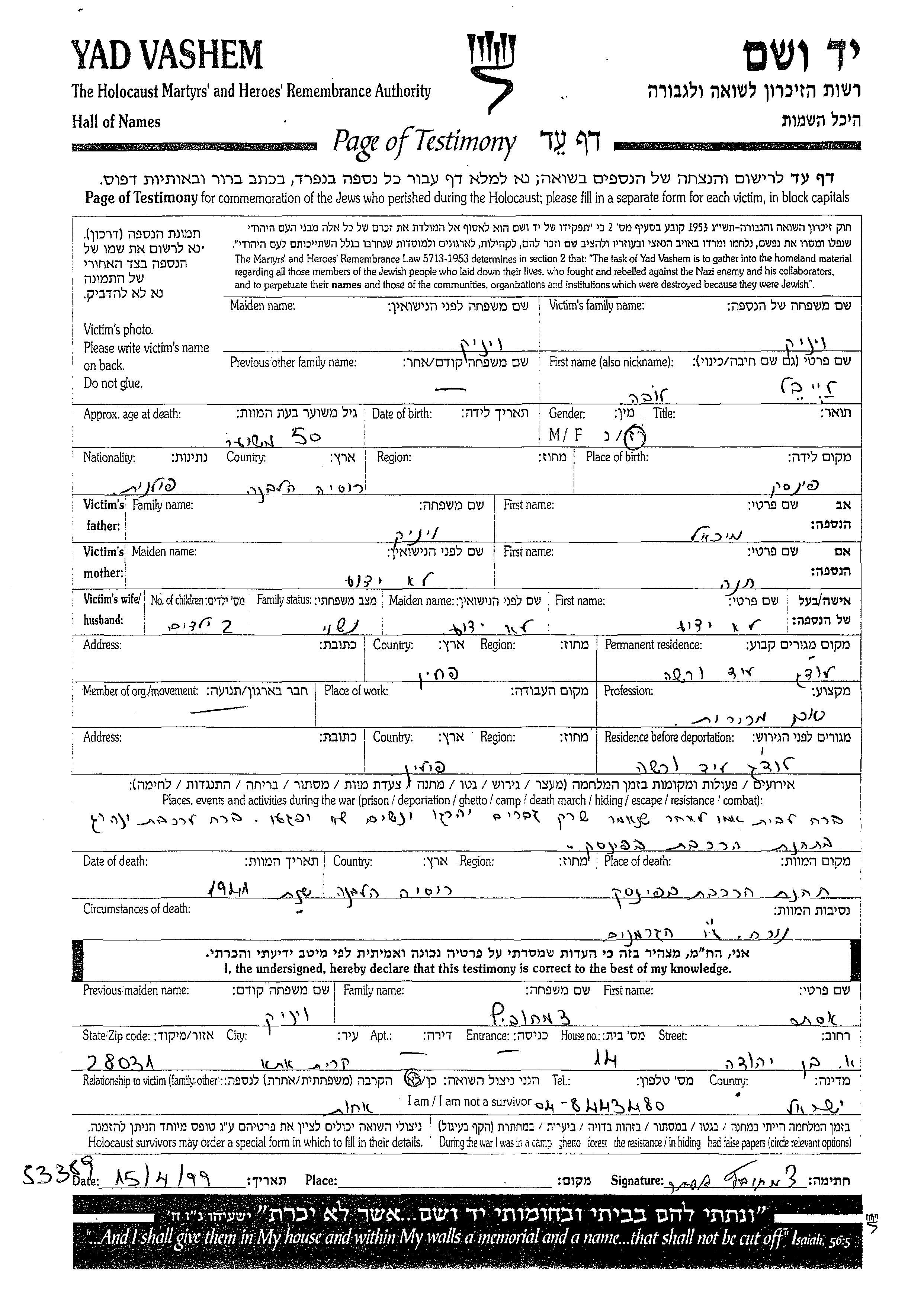 Lova Leib Vinik wurde im Jahr 1894 in Pinsk, Polen geboren. Vor dem Zweiten Weltkrieg lebte er in Lodz, Polen.
