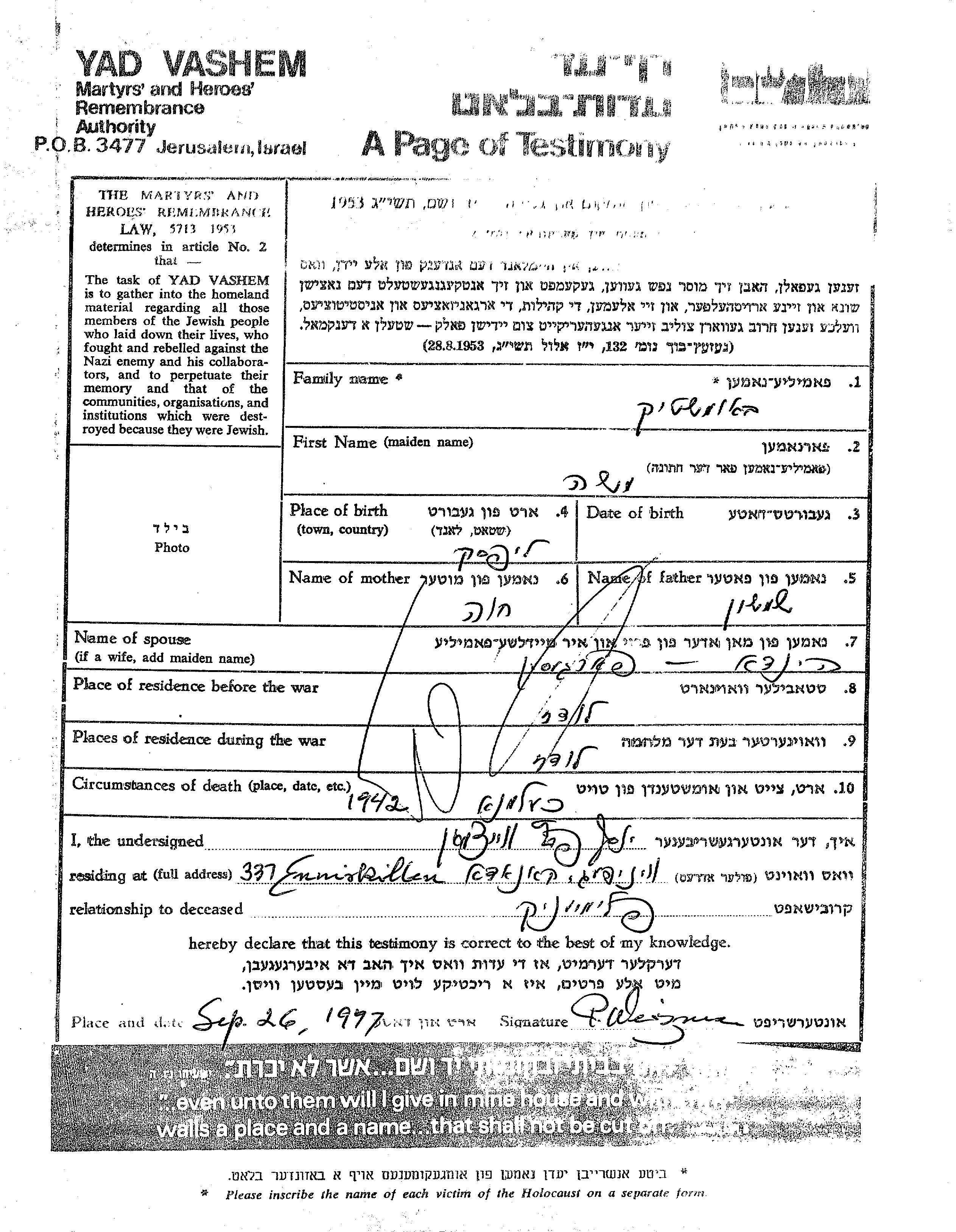 Moshe wurde in der Schoah ermordet. Todesort: Chelmno, Polen im Jahr 1942.