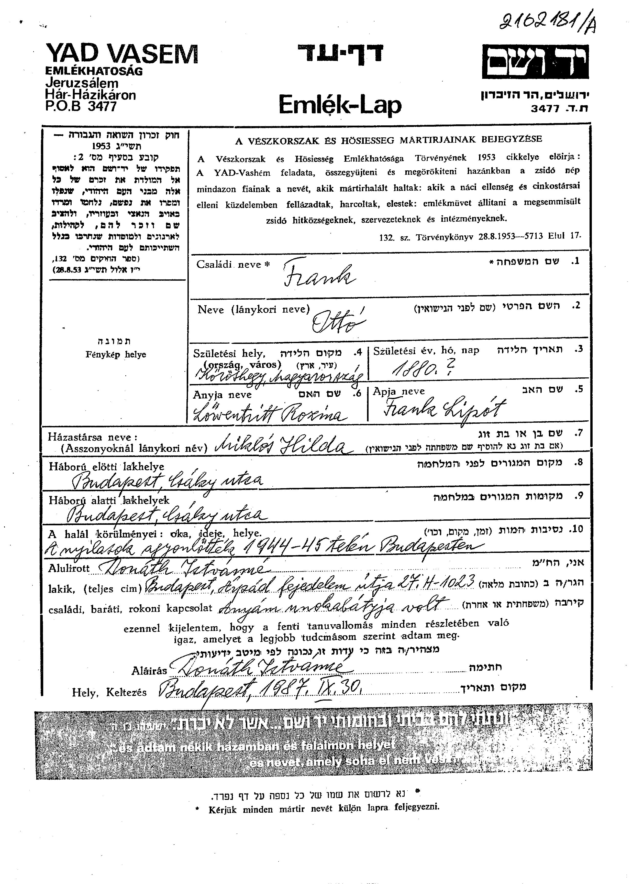 Oto wurde in der Schoah ermordet. Todesort: Budapest, Ungarn im Jahr 1944.
