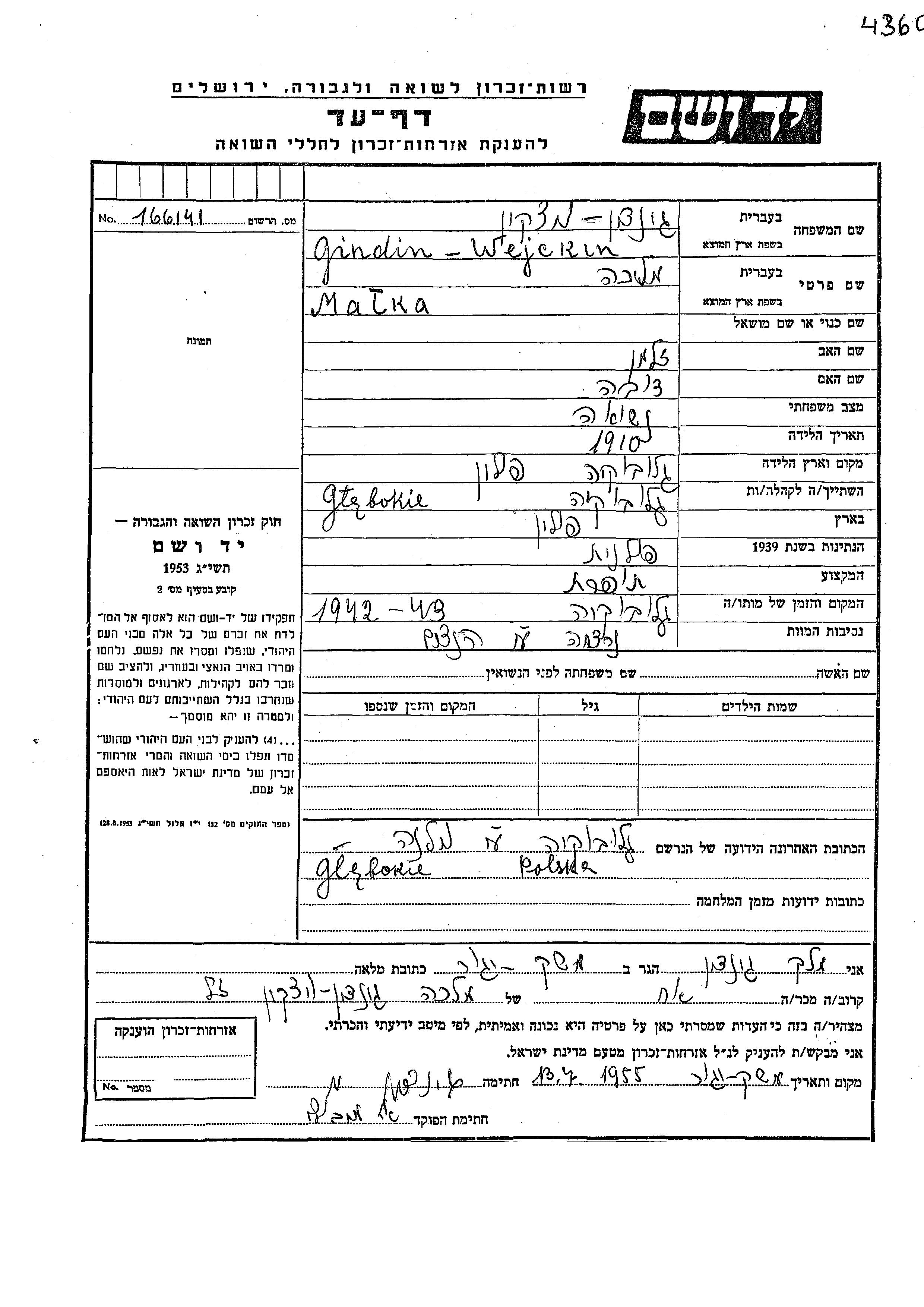 Majka Malka Gindin wurde im Jahr 1910 geboren. Sie war die Tochter von Zalman und Tziva. Sie war Schneiderin.