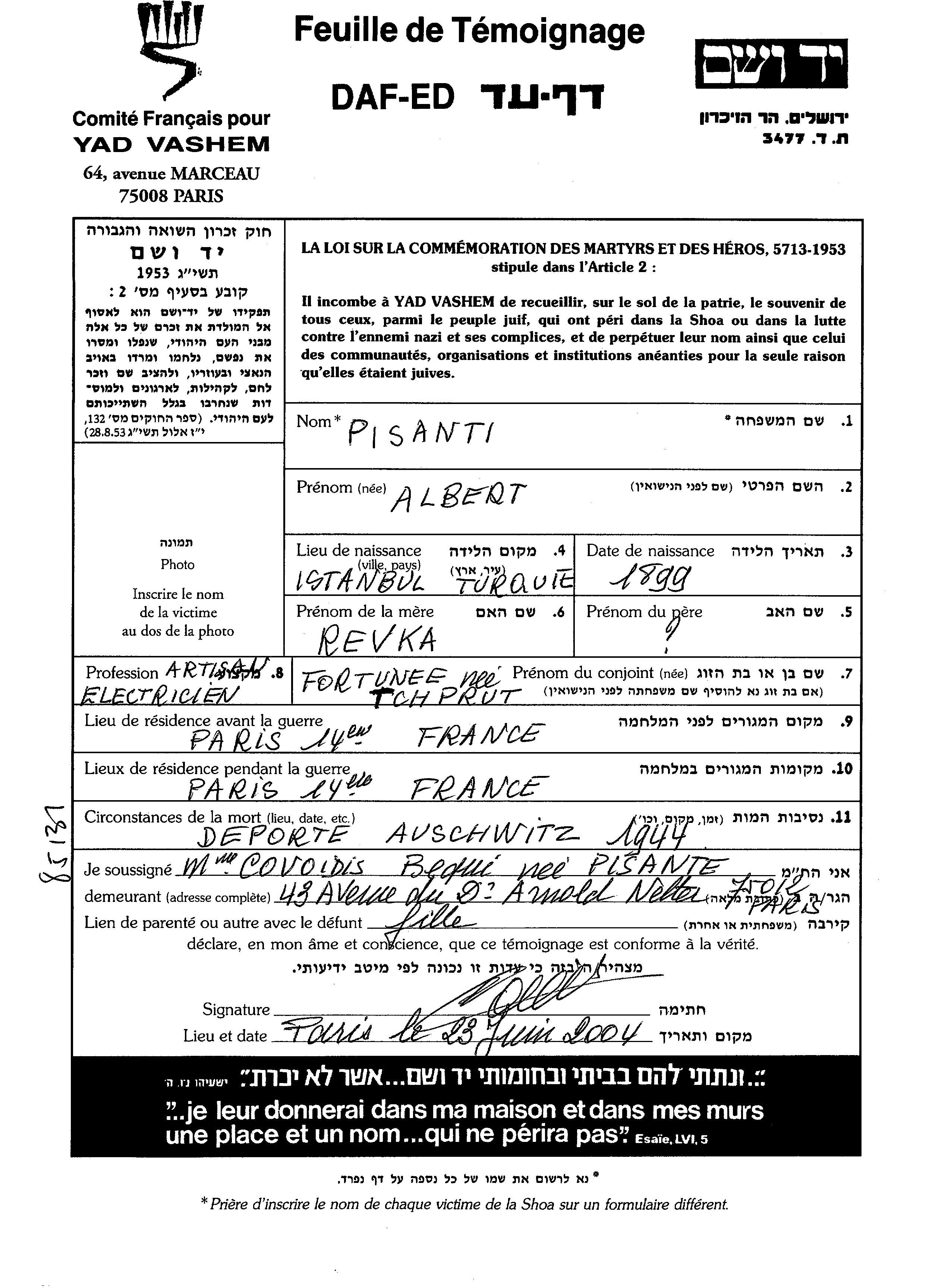 Pisanti | Albert | 1899 | Paris, Frankreich | Gedenkblatt |