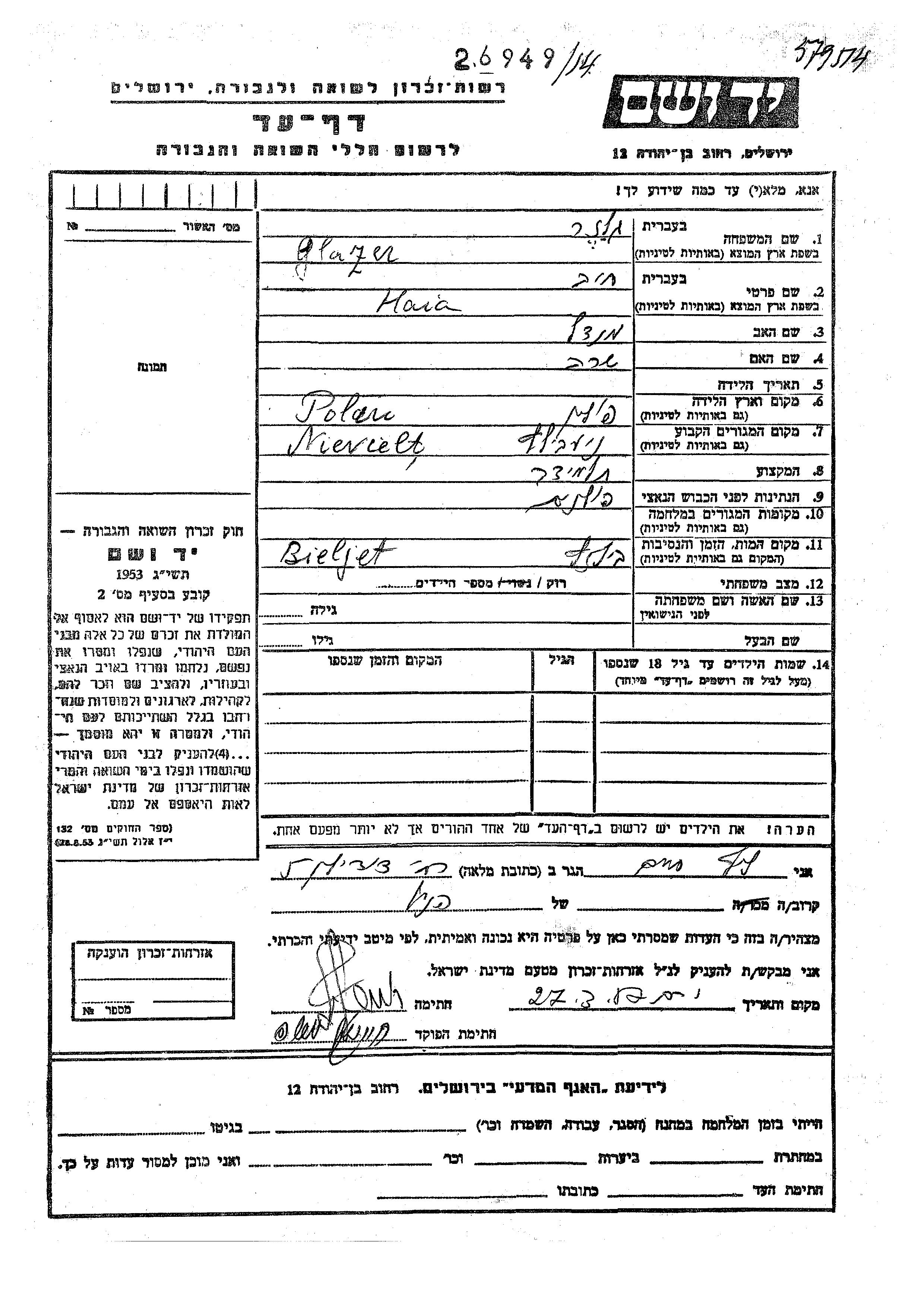 Glazer Hava Nievielt, Polen Gedenkblatt