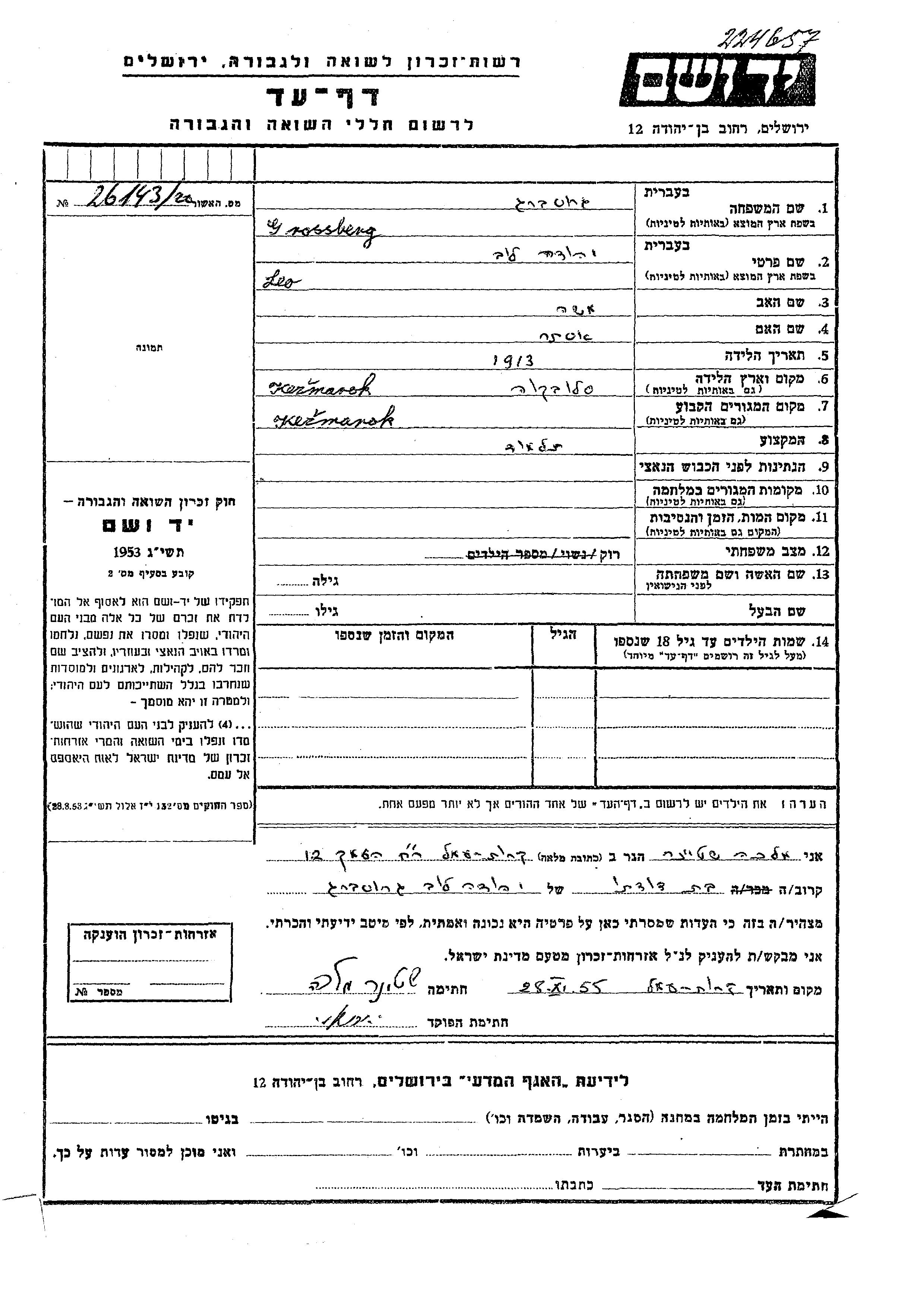 Yehuda Leo Lev Leib wurde in der Schoah ermordet. Todesort: unbekannter Ort.