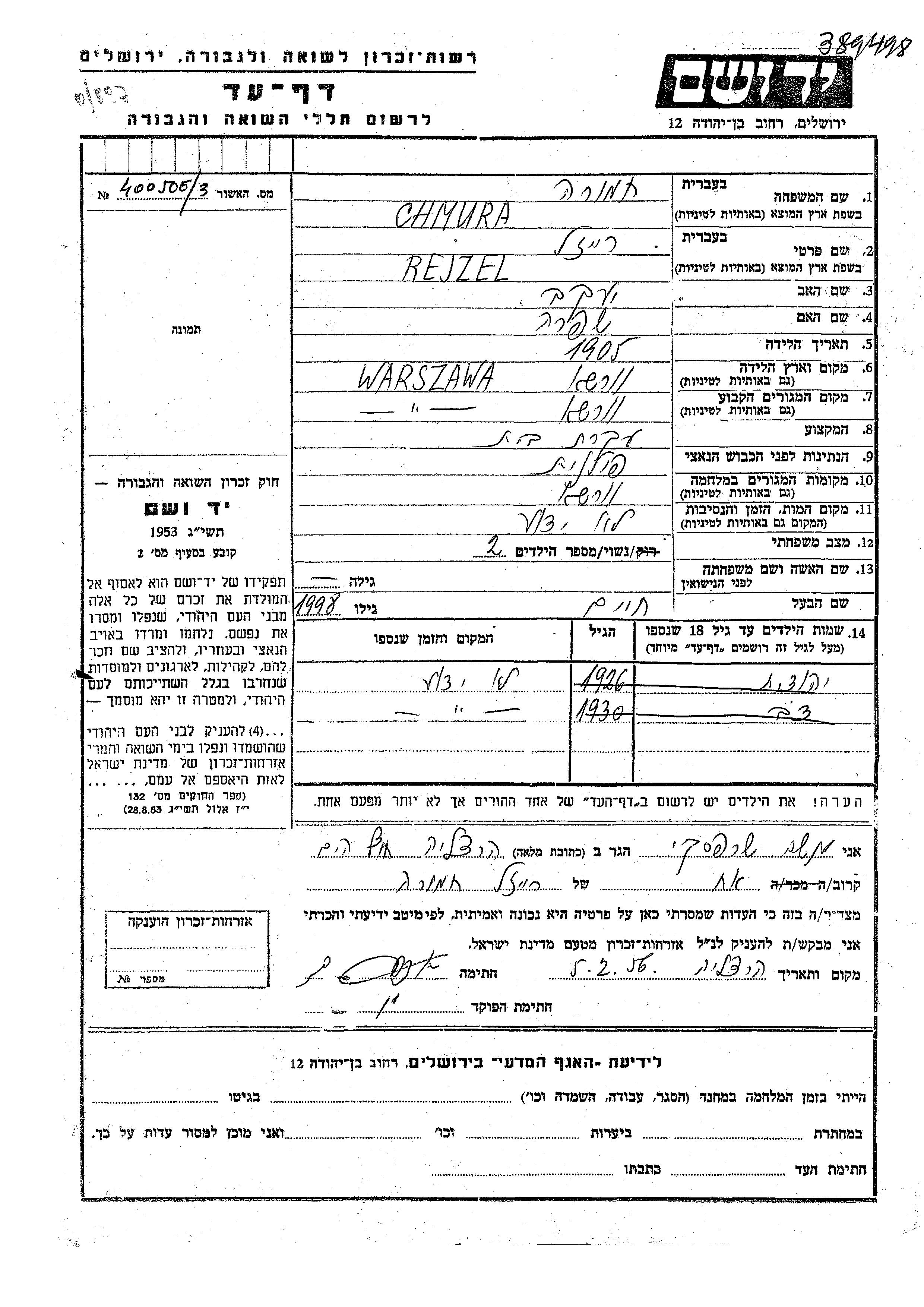 Dov Chmura wurde im Jahr 1930 geboren. Vor dem Zweiten Weltkrieg lebte er in Warszawa, Polen.