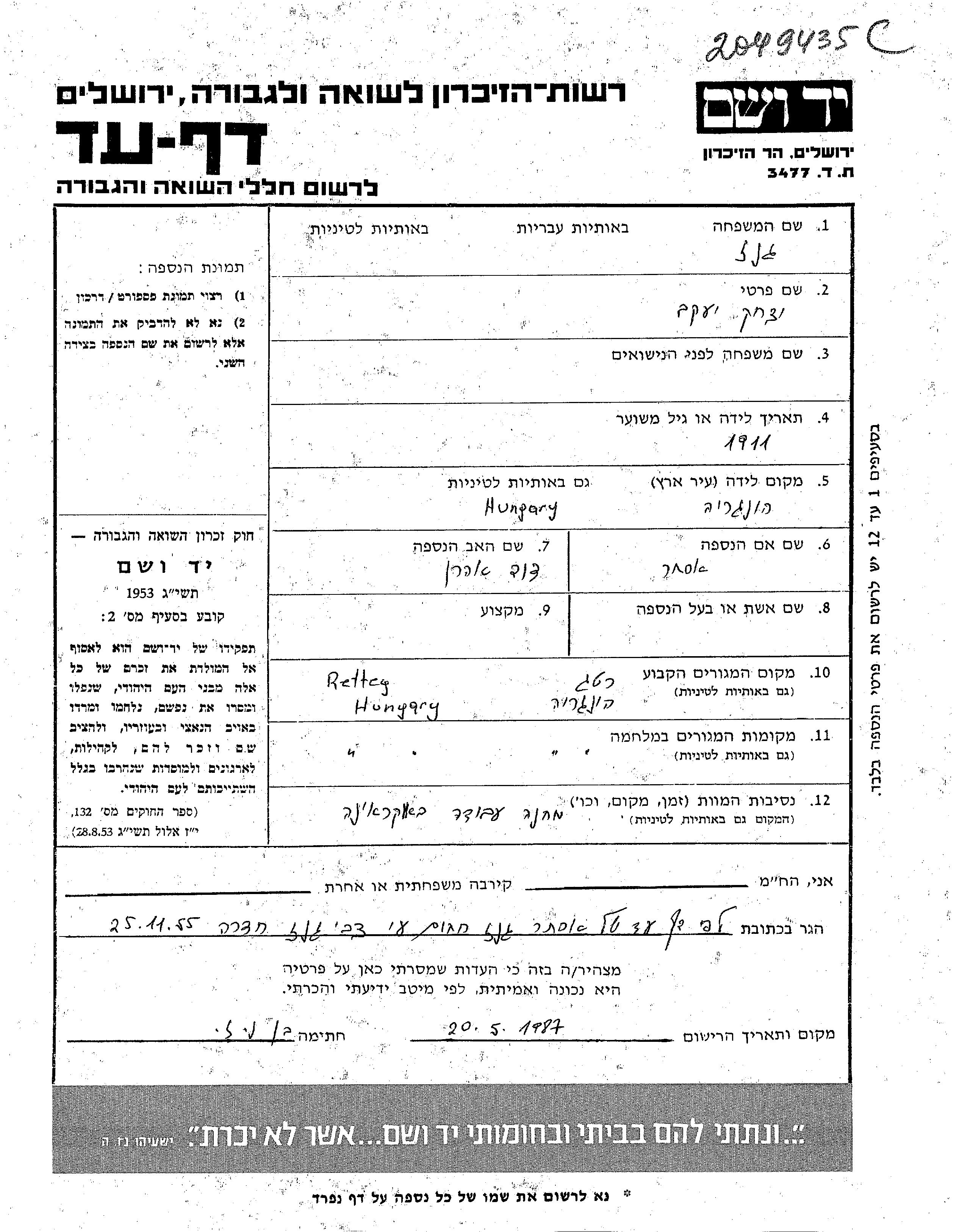 Yitzkhak Yaakov wurde in der Schoah ermordet. Todesort: Lager, Ukraine (UdSSR).