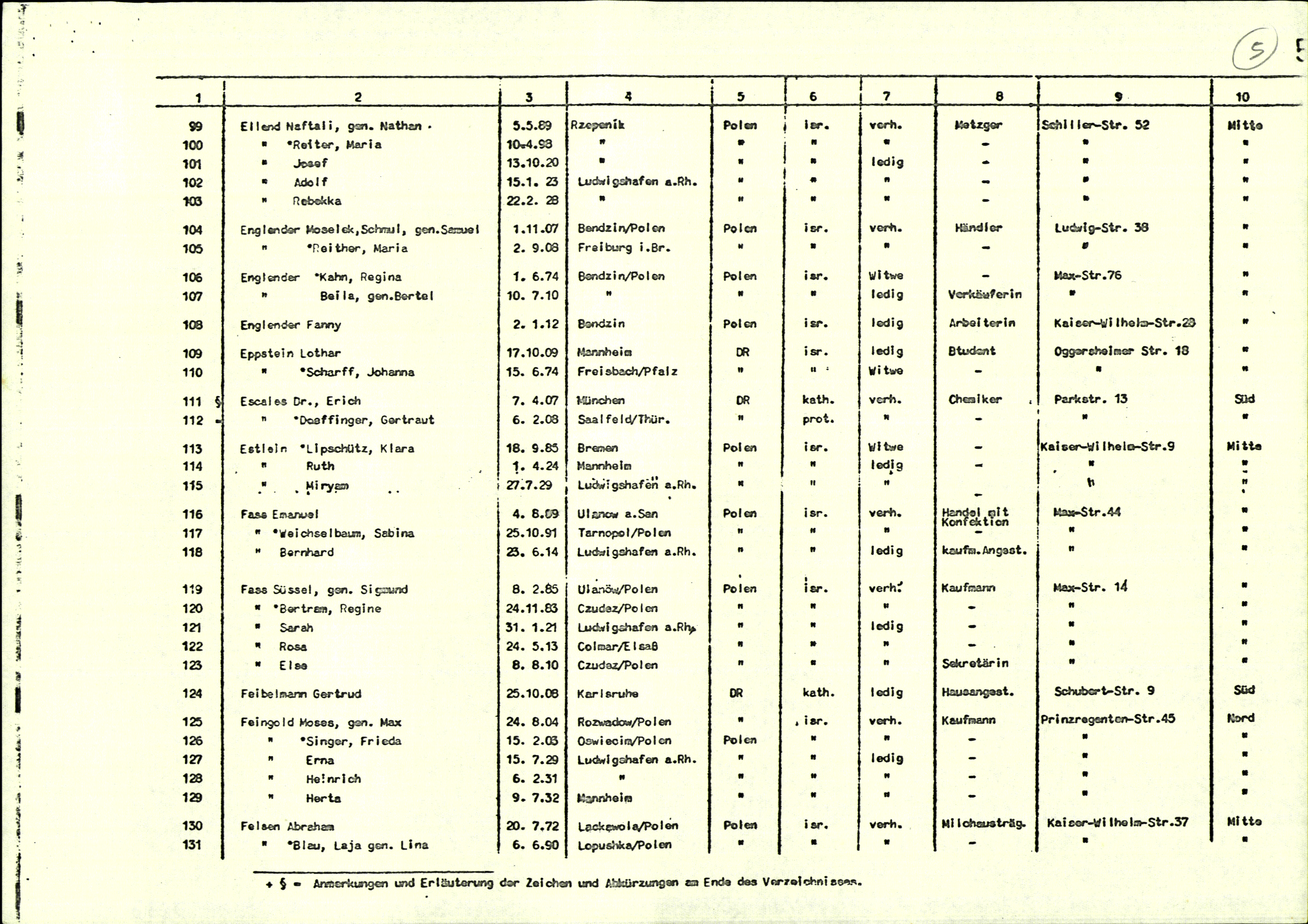Fass Regine 1883 Ludwigshafen am Rhein, Deutsches Reich Verfolgtenliste
