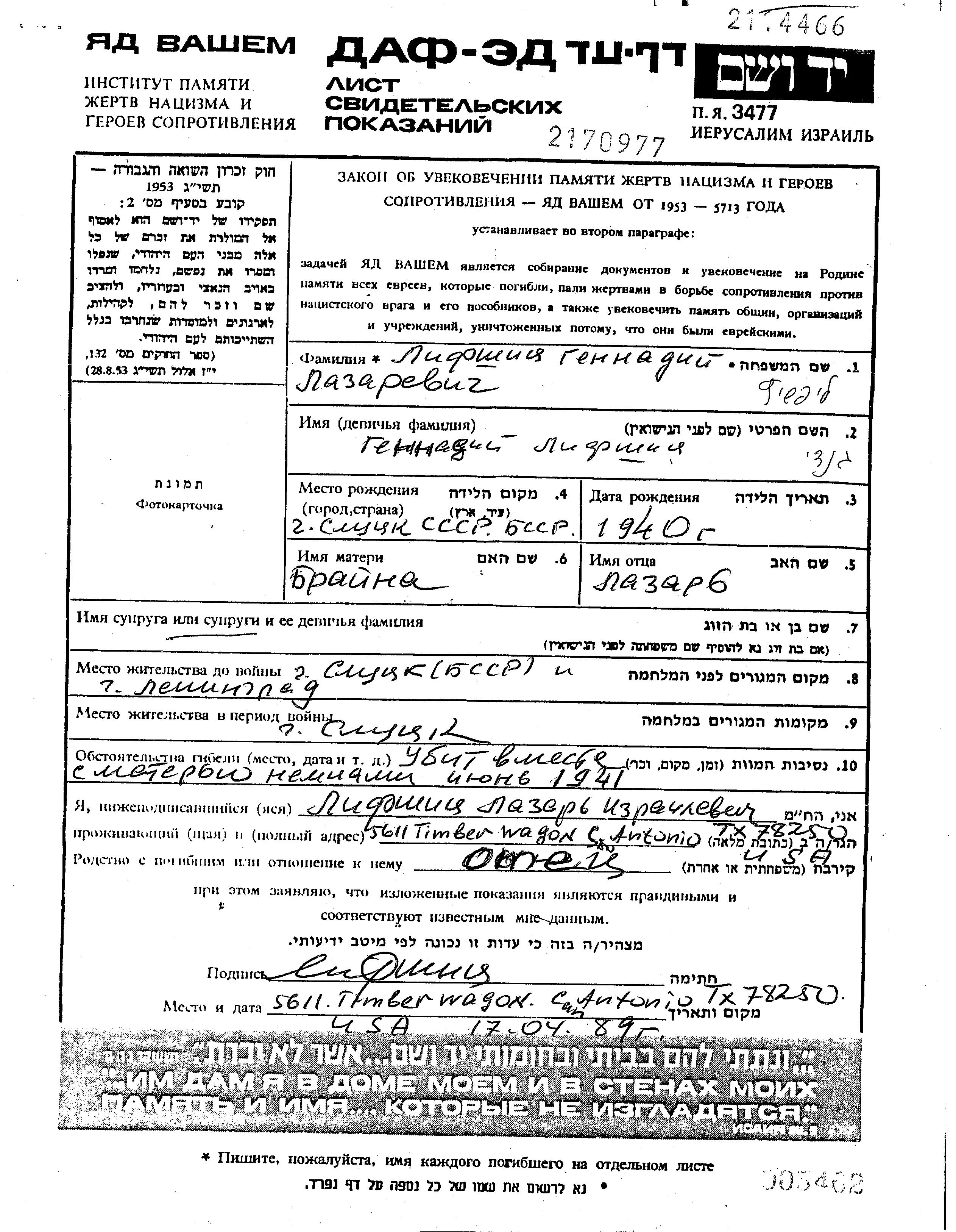 Gennadi Lifshits wurde im Jahr 1940 geboren. Vor dem Zweiten Weltkrieg lebte er in Leningrad, Russland (UdSSR).