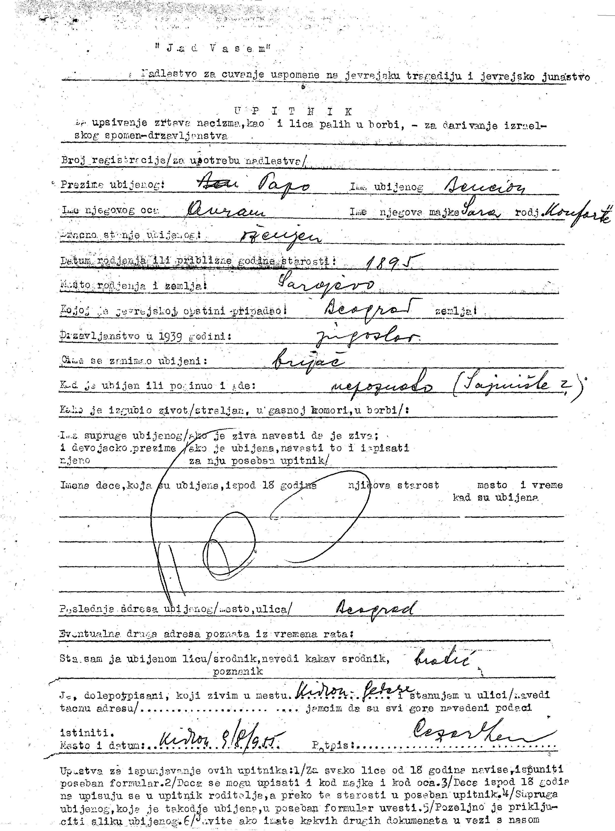 Bentzion Papo wurde im Jahr 1895 in Sarajevo, Jugoslawien geboren. Vor dem Zweiten Weltkrieg lebte er in Beograd, Jugoslawien.