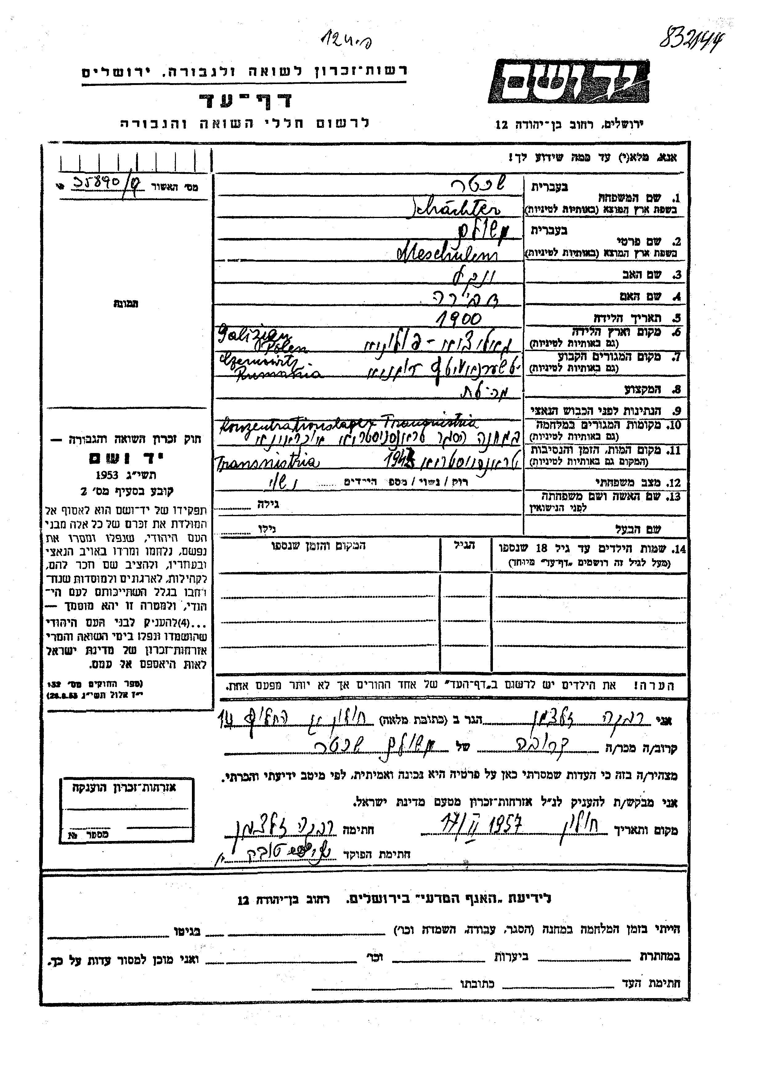 Meshulam Schächter wurde im Jahr 1900 in Galizien Region, Polen geboren. Vor dem Zweiten Weltkrieg lebte er in Cernauti, Rumänien.