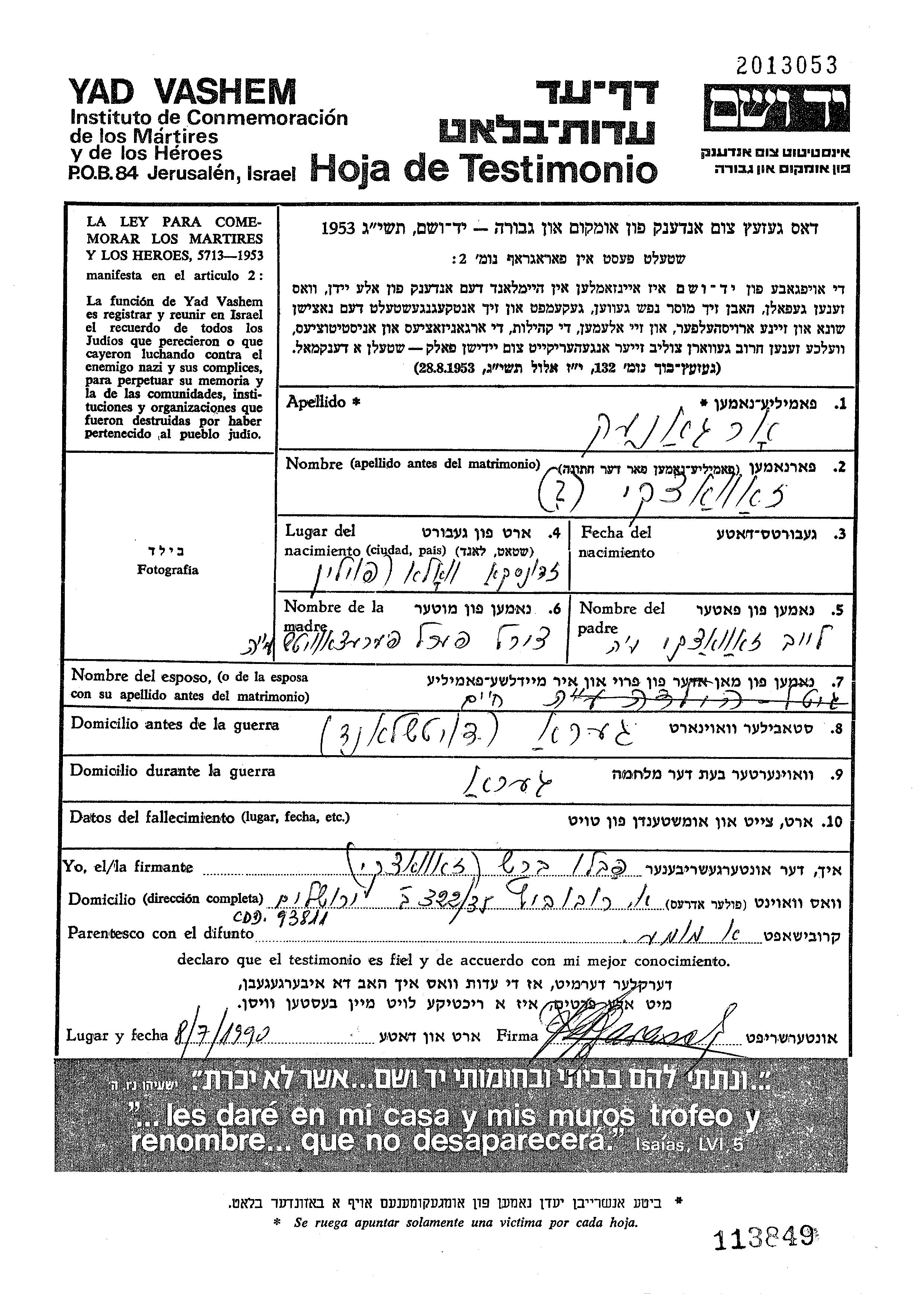 Gitl Hilda Organek Organkenich, geb. Zawadzki wurde in Zdunska Wola, Polen geboren. Sie war Hausfrau. Vor dem Zweiten Weltkrieg lebte sie in Gera, Deutsches Reich.