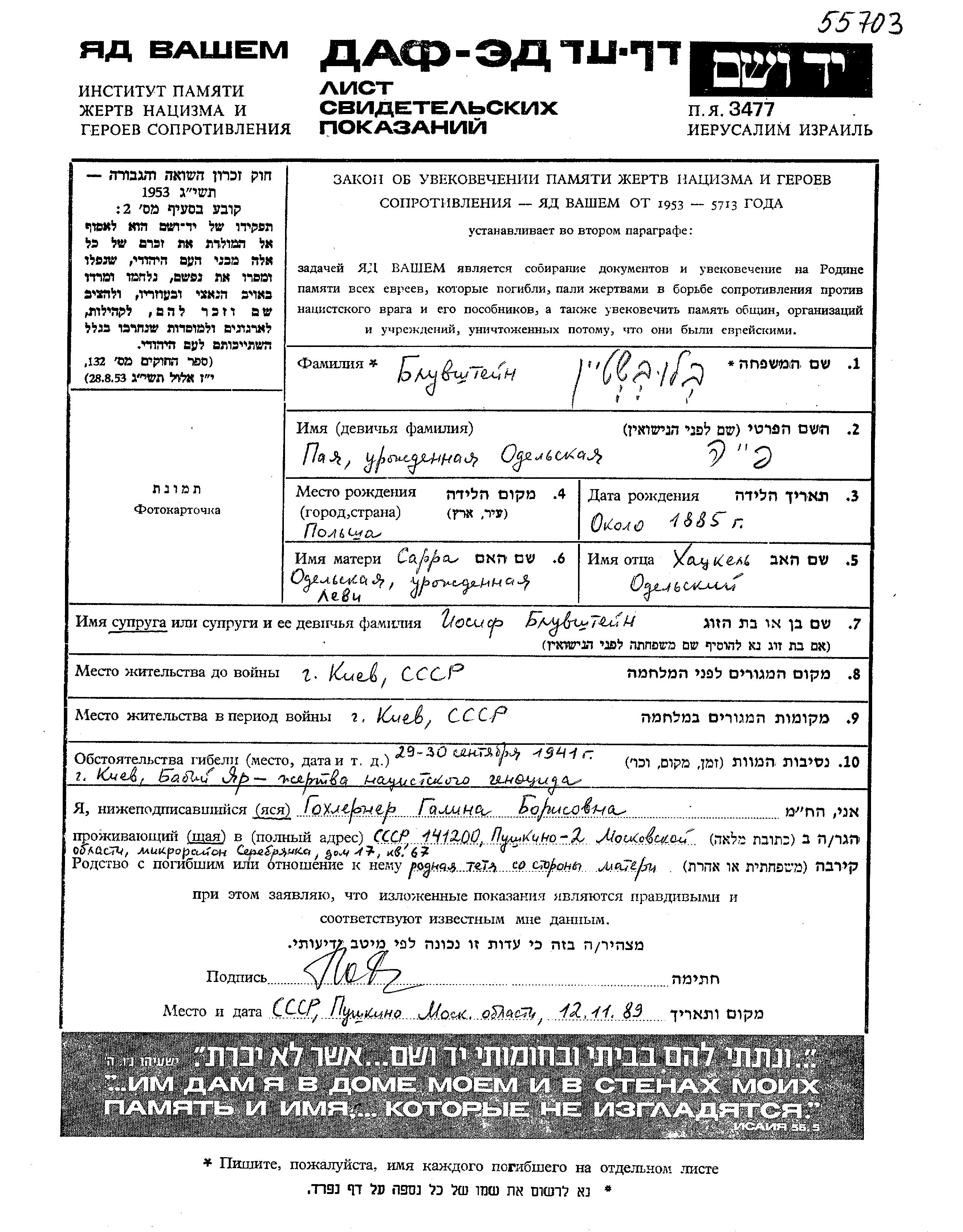 | Bluvshtein | Paia | 1885 | Kiyev, Ukraine (UdSSR) | Gedenkblatt |