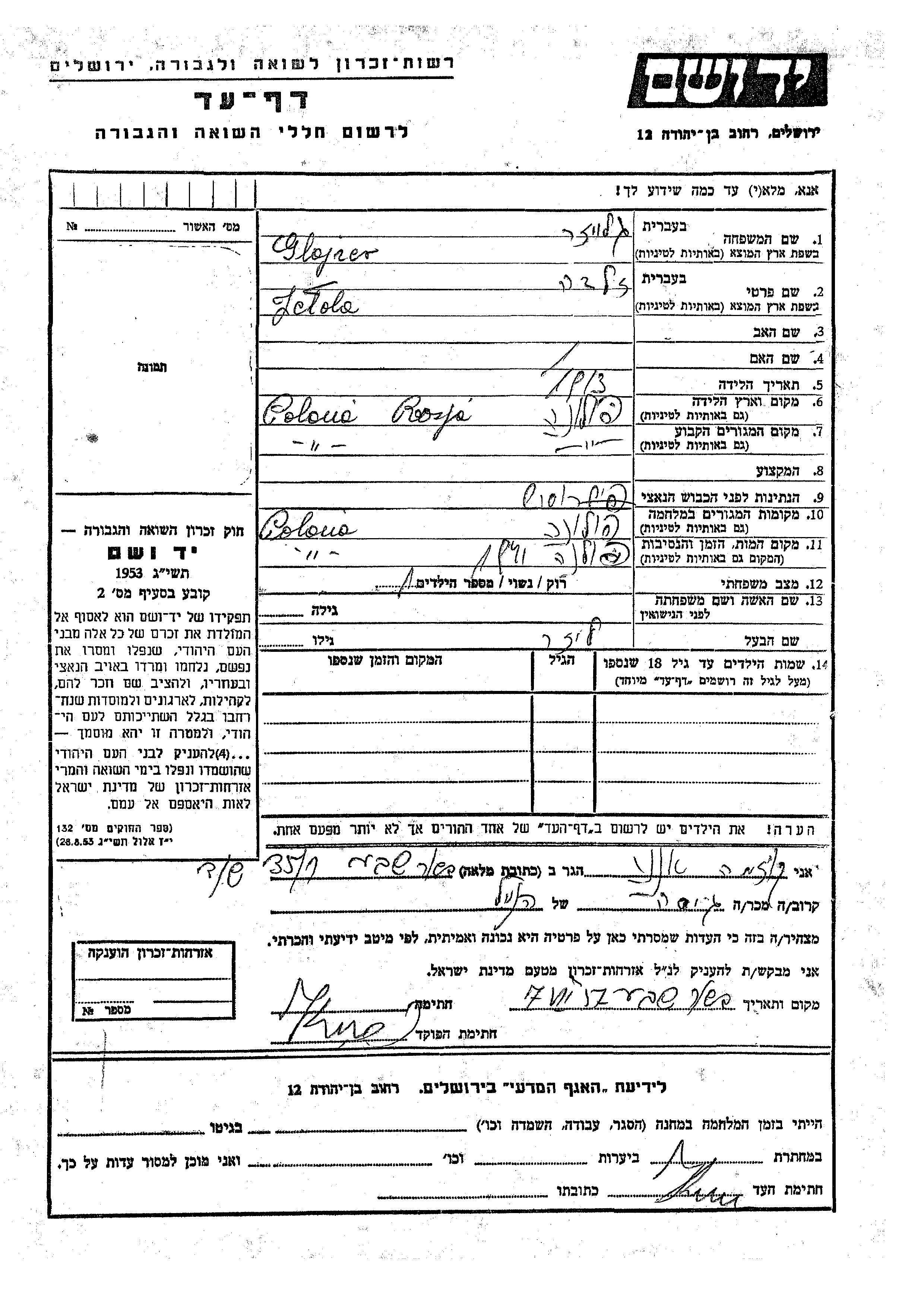 Zelda Glajzer wurde im Jahr 1913 in Polen geboren. Sie war mit Eliezer Verheiratet. Vor dem Zweiten Weltkrieg lebte sie in Polen. Während des Krieges war sie in Polen.