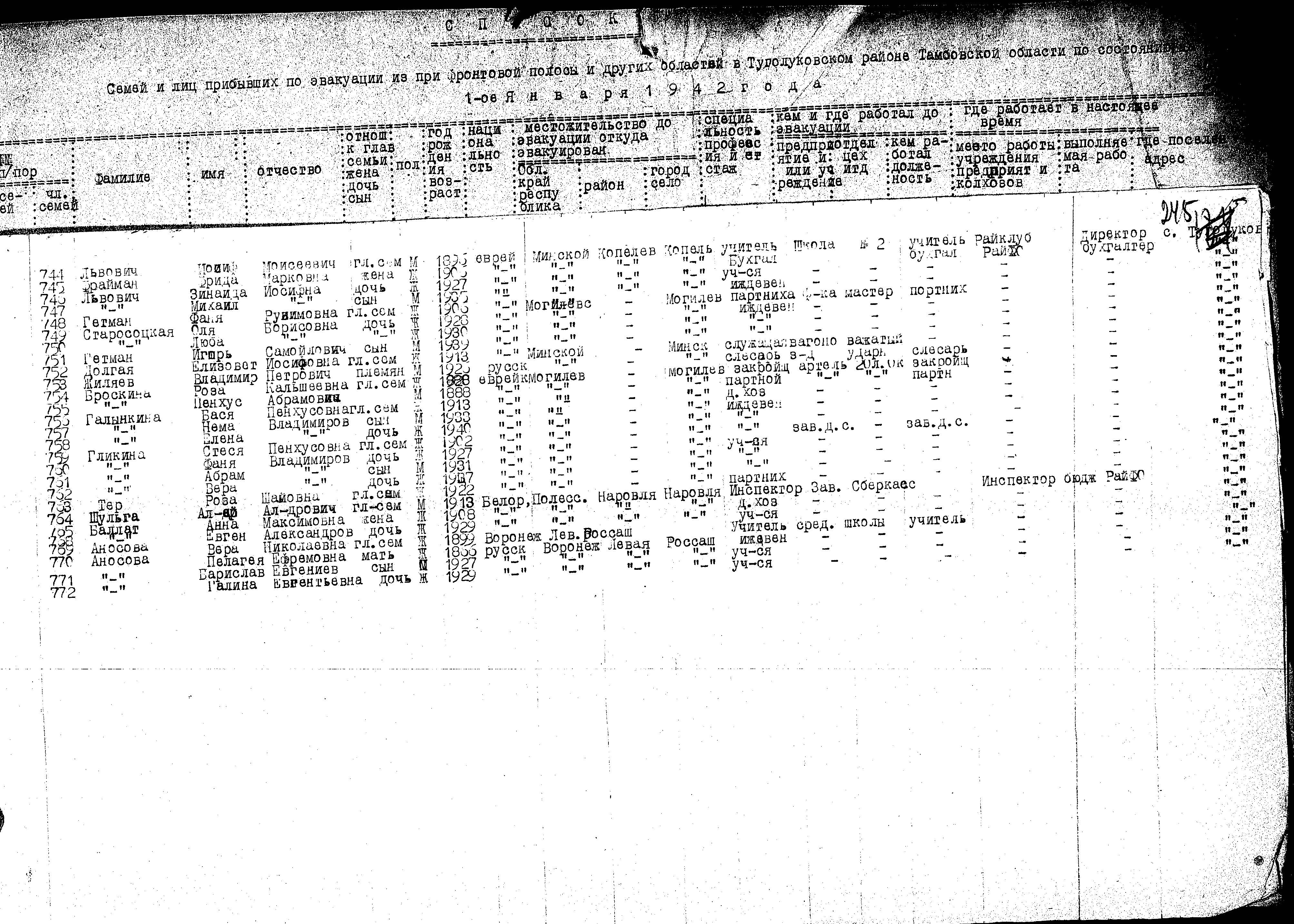 Lvovich Iosif 1896 Kopyl, Weißrussland (UdSSR) Evakuiertenliste