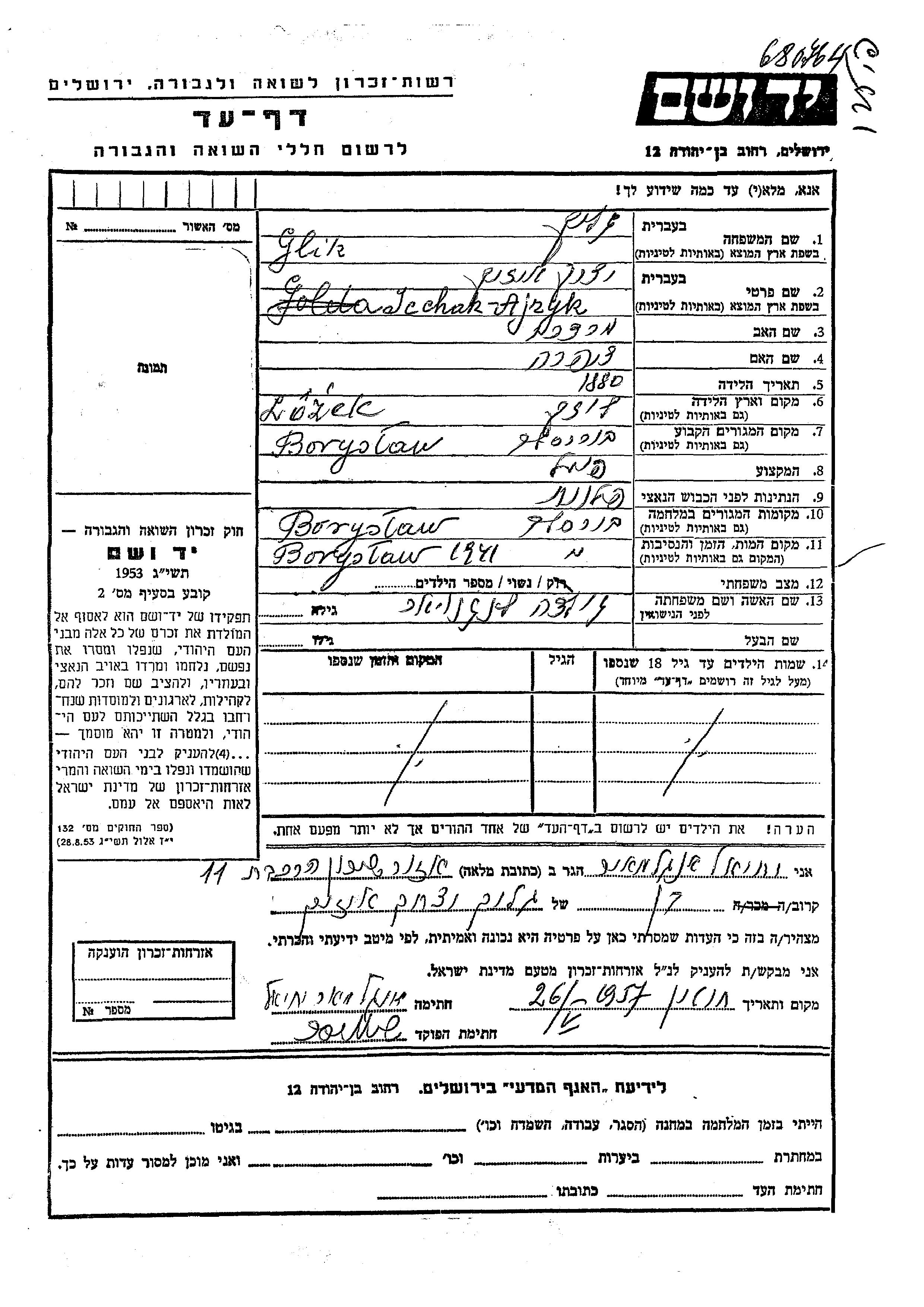 Jcchak wurde in der Schoah ermordet. Todesort: Boryslaw, Polen im Jahr 1941.