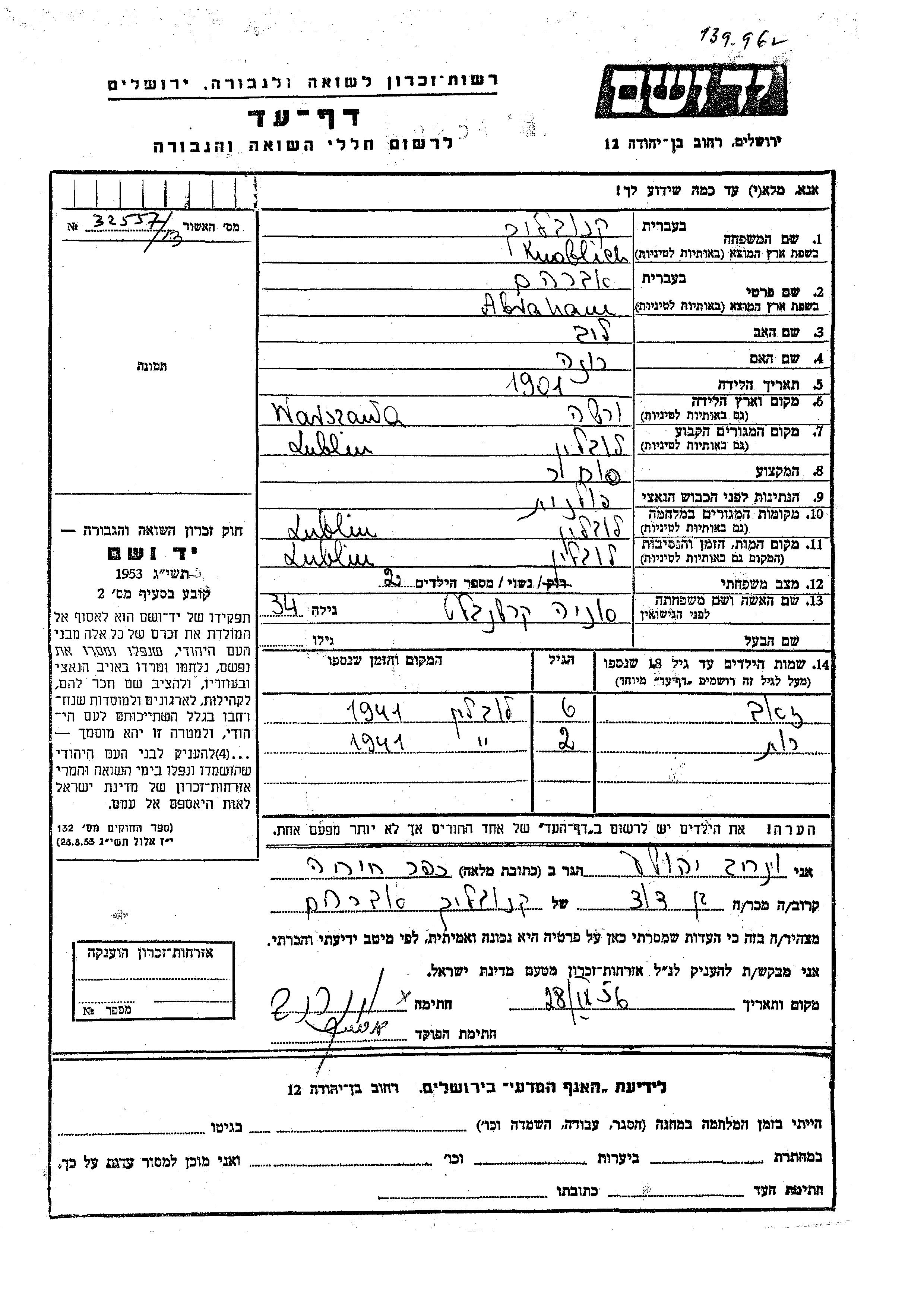 Dolek Avraham wurde in der Schoah ermordet. Todesort: Lublin, Polen.