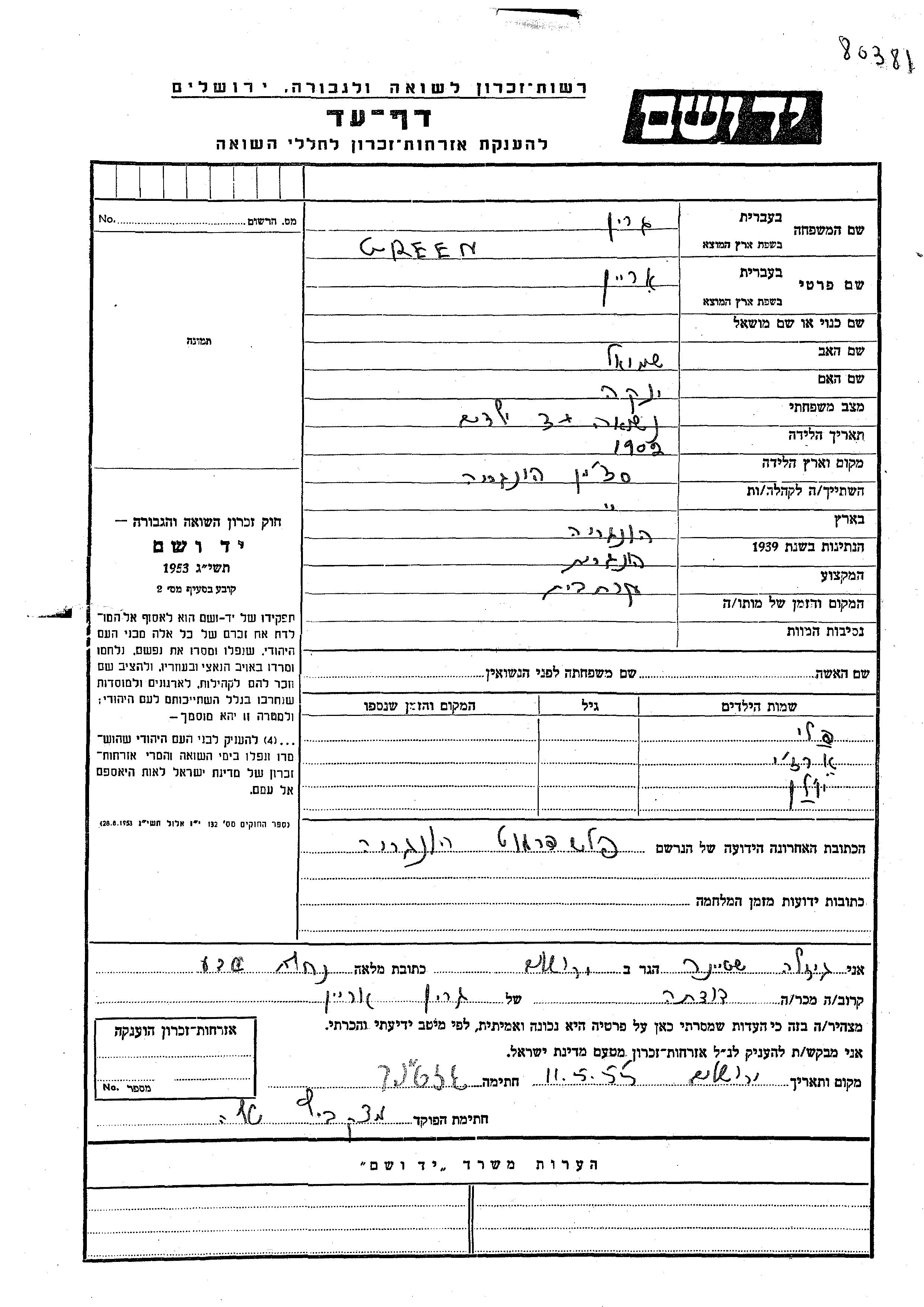 Yad Vashem - Gedenkblätter Sammlung