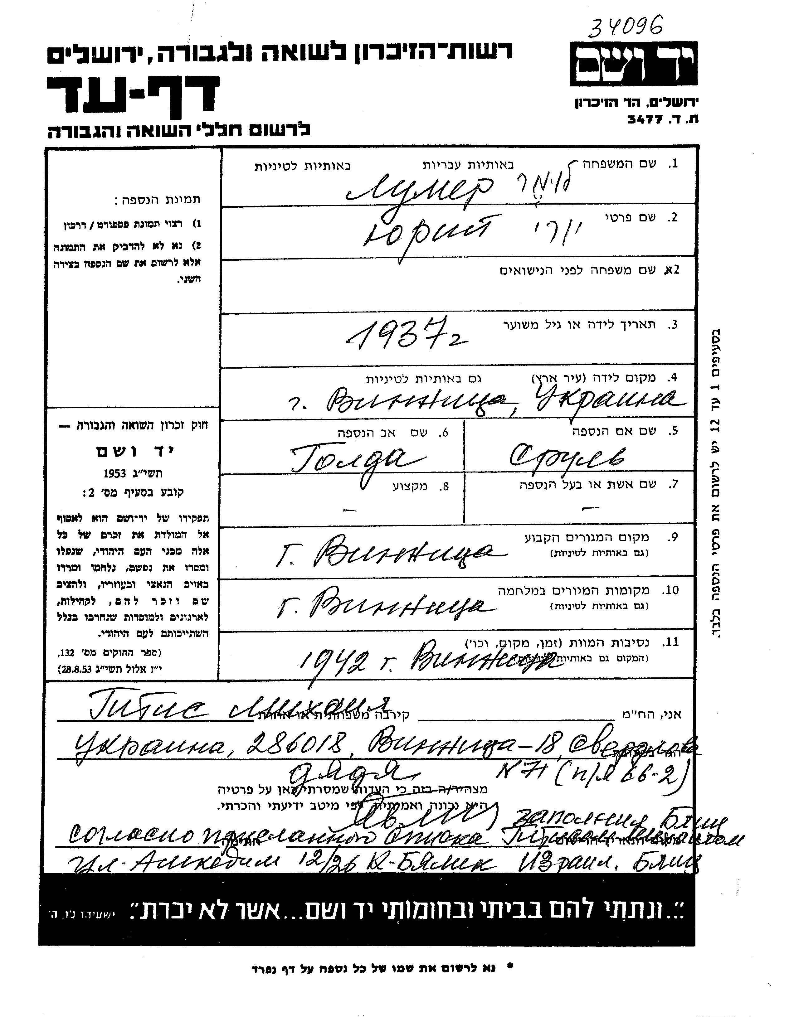 Yuri wurde in der Schoah ermordet. Todesort: Vinnitsa, Ukraine (UdSSR).