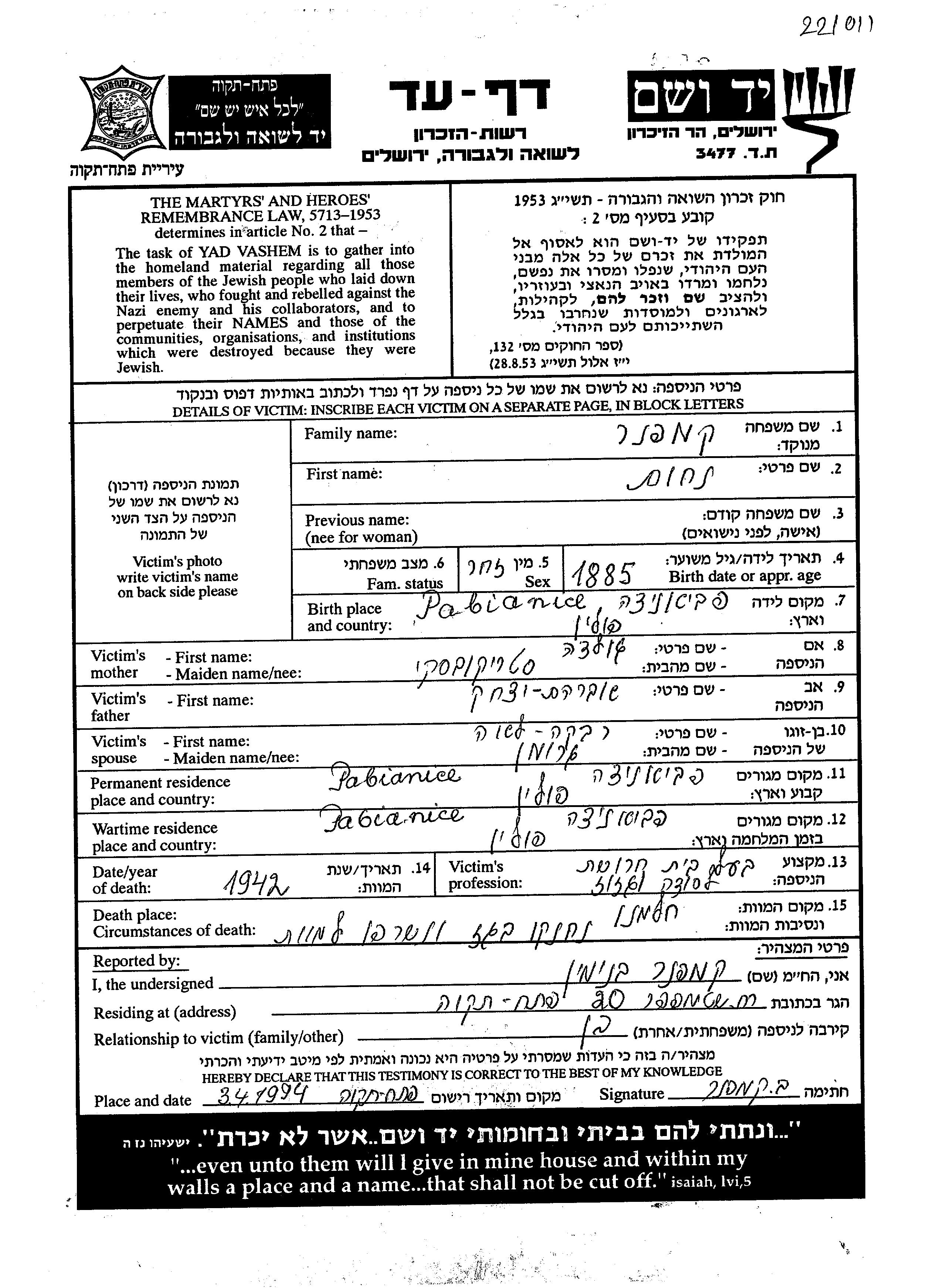 Nakhum wurde in der Schoah ermordet. Todesort: Chelmno, Polen im Jahr 1942.