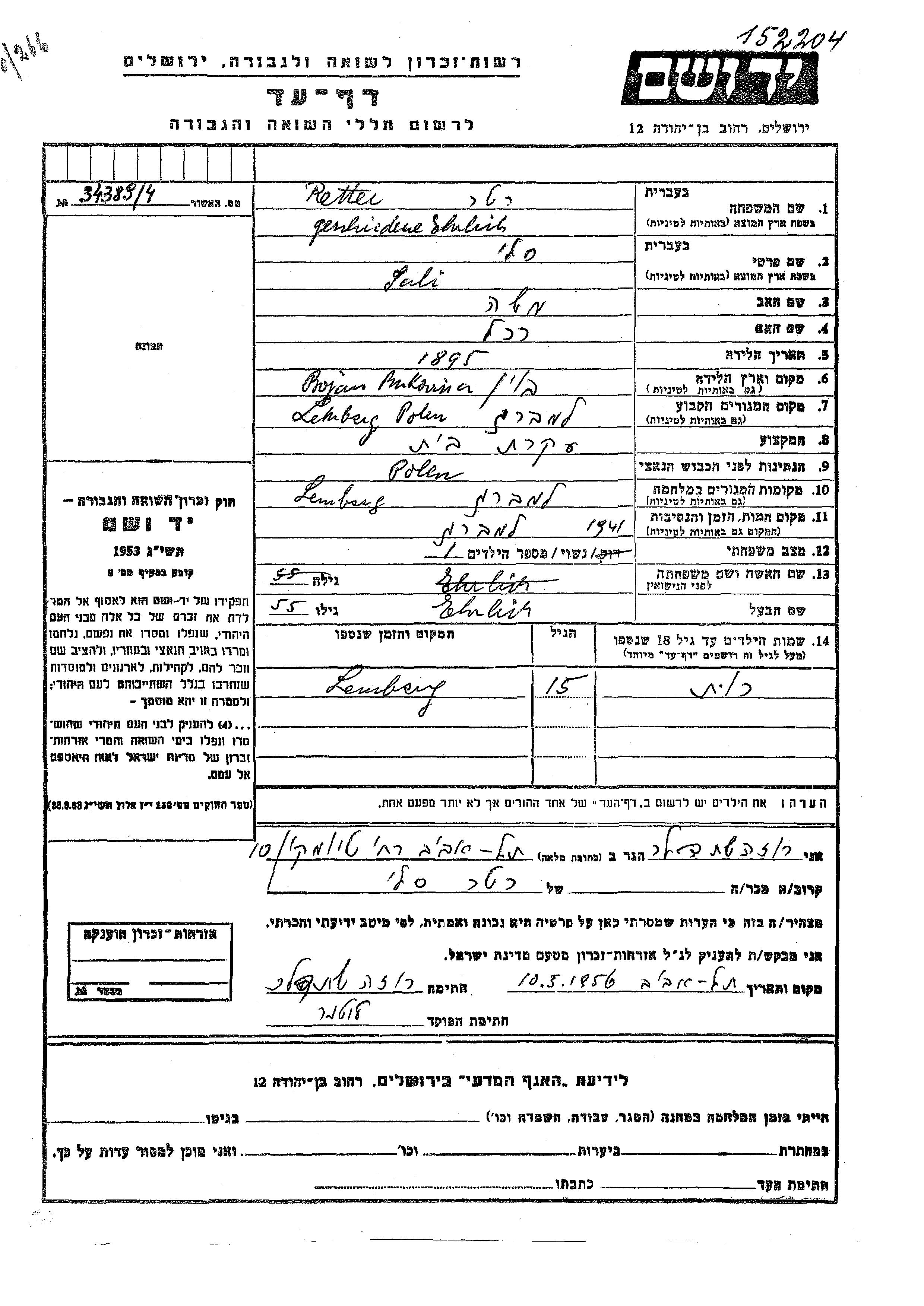 Sali Retter wurde im Jahr 1895 in Boian, Rumänien geboren. Sie war die Tochter von Moshe und Rakhel. Sie war Hausfrau und Verheiratet. Vor dem Zweiten Weltkrieg lebte sie in Lemberg, Polen. Während des Krieges war sie in Lemberg, Polen.