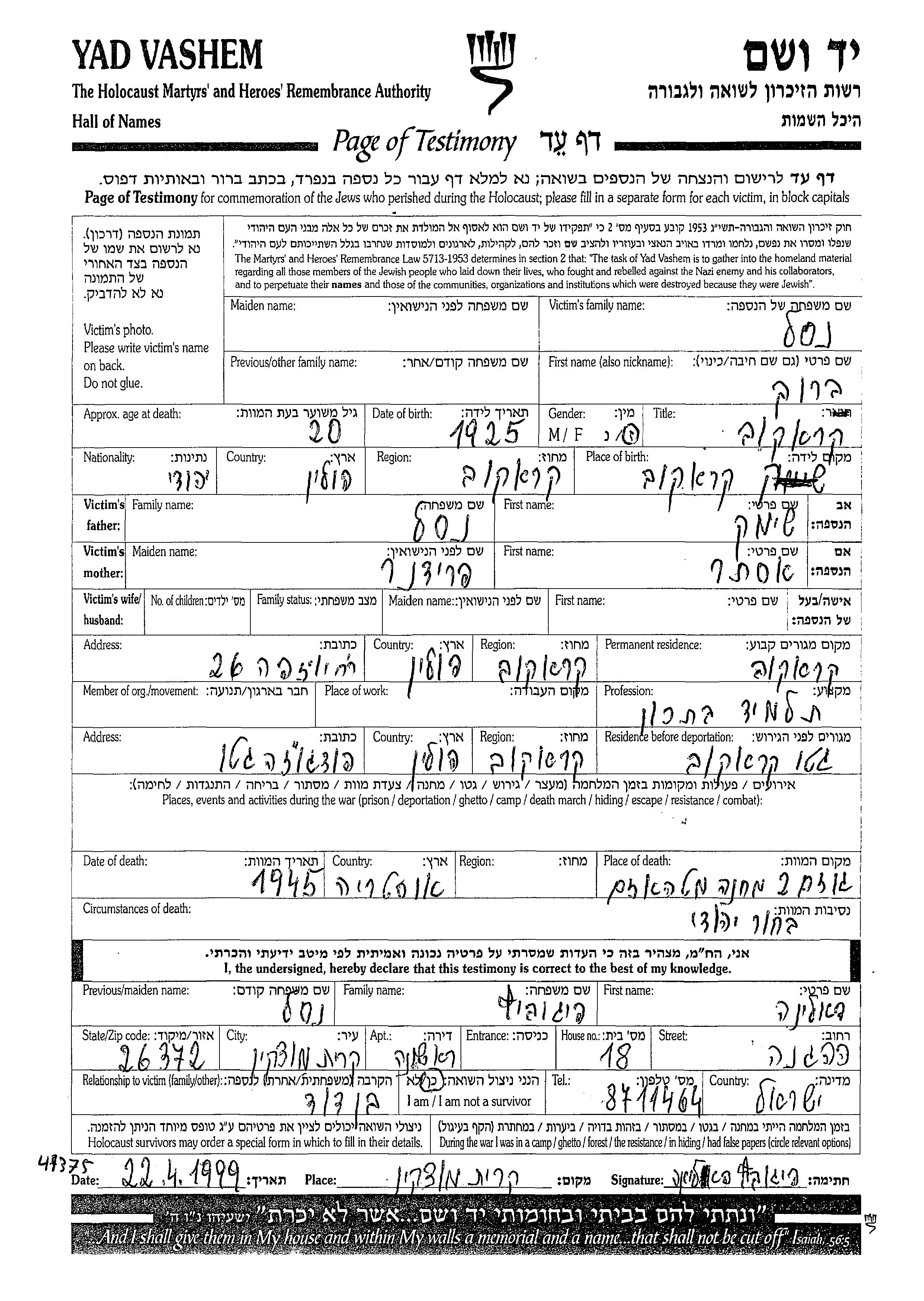 Barukh Nesl wurde im Jahr 1925 in Krakow, Polen geboren. Er war Gymnasiast. Vor dem Zweiten Weltkrieg lebte er in Krakow, Polen.