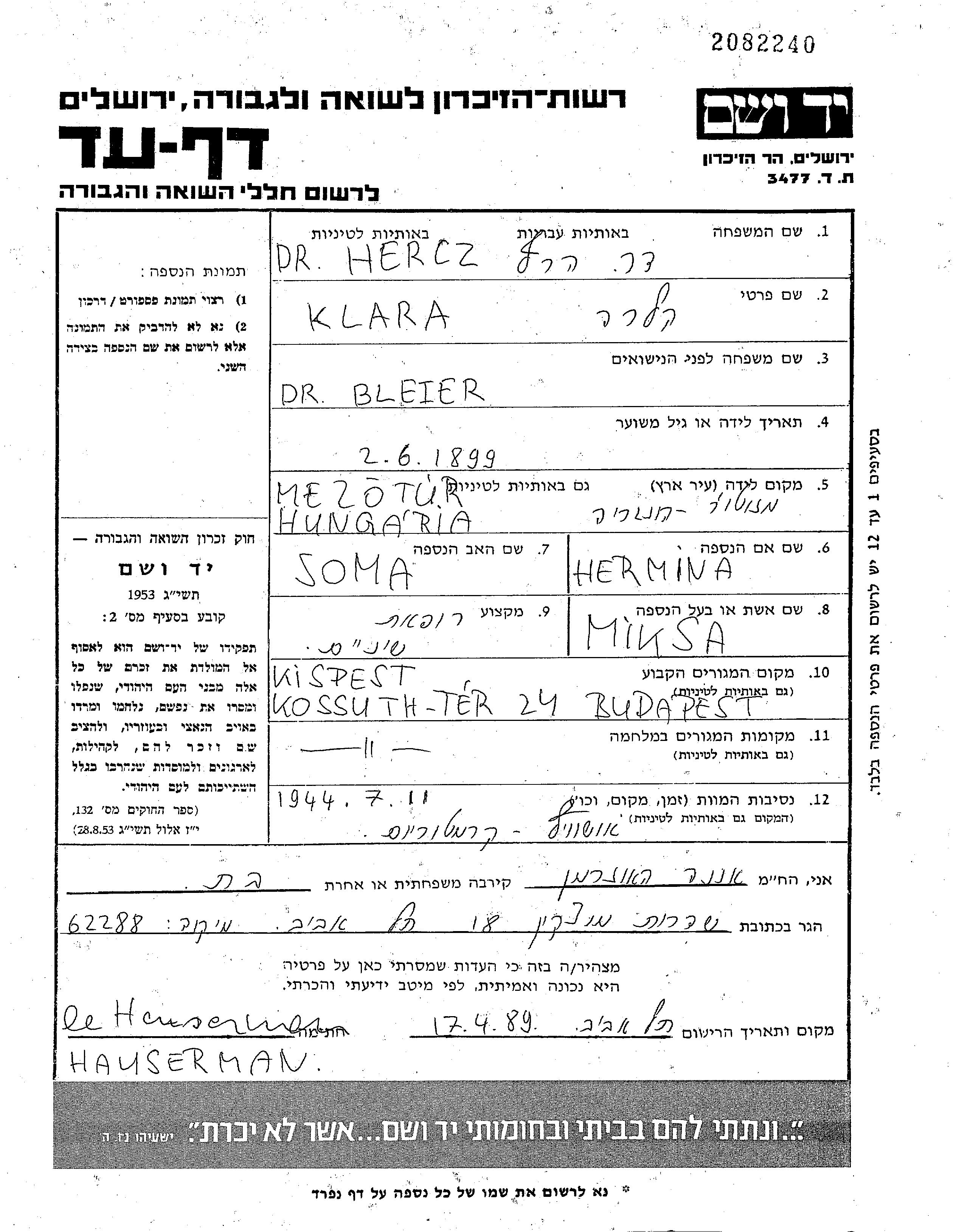 | Hertz | Klara | Kispest, Ungarn | Verfolgtenliste |