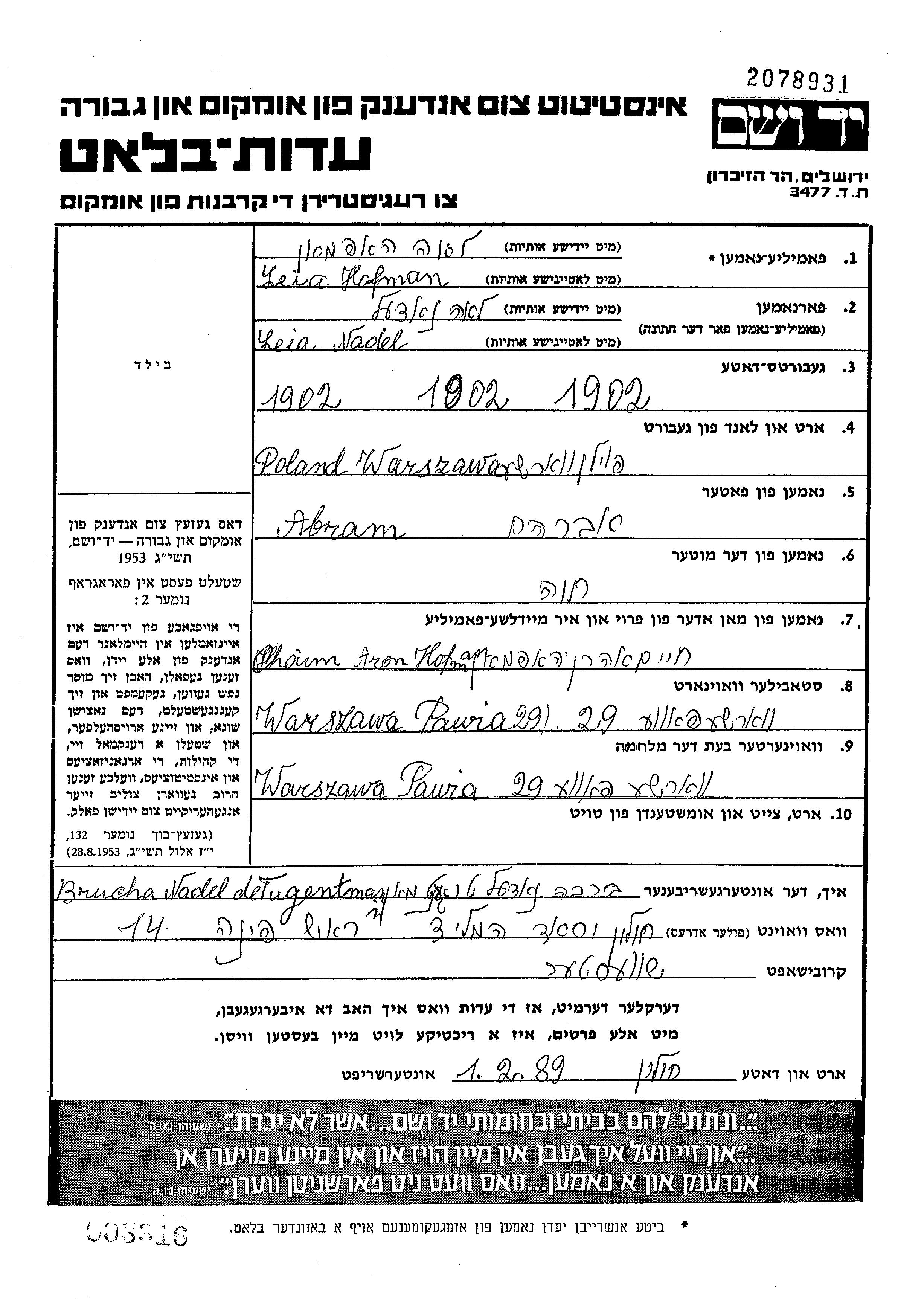 Lea Hofman, geb. Nadel wurde im Jahr 1902 in Warszawa, Polen geboren. Sie war Hausfrau. Vor dem Zweiten Weltkrieg lebte sie in Warszawa, Polen.