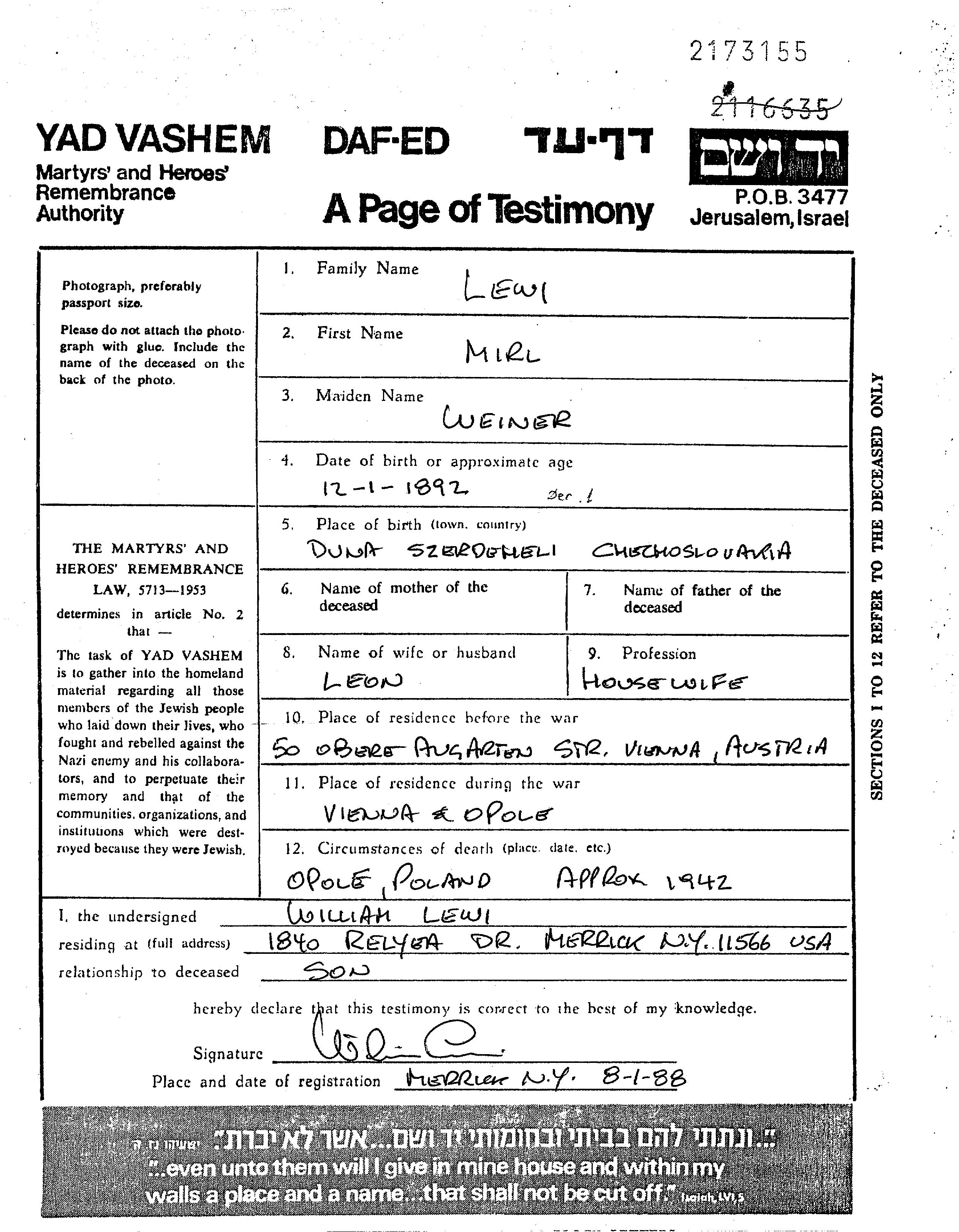 | Lewi | Mirl | 1892 | Wien, Österreich | Photos |