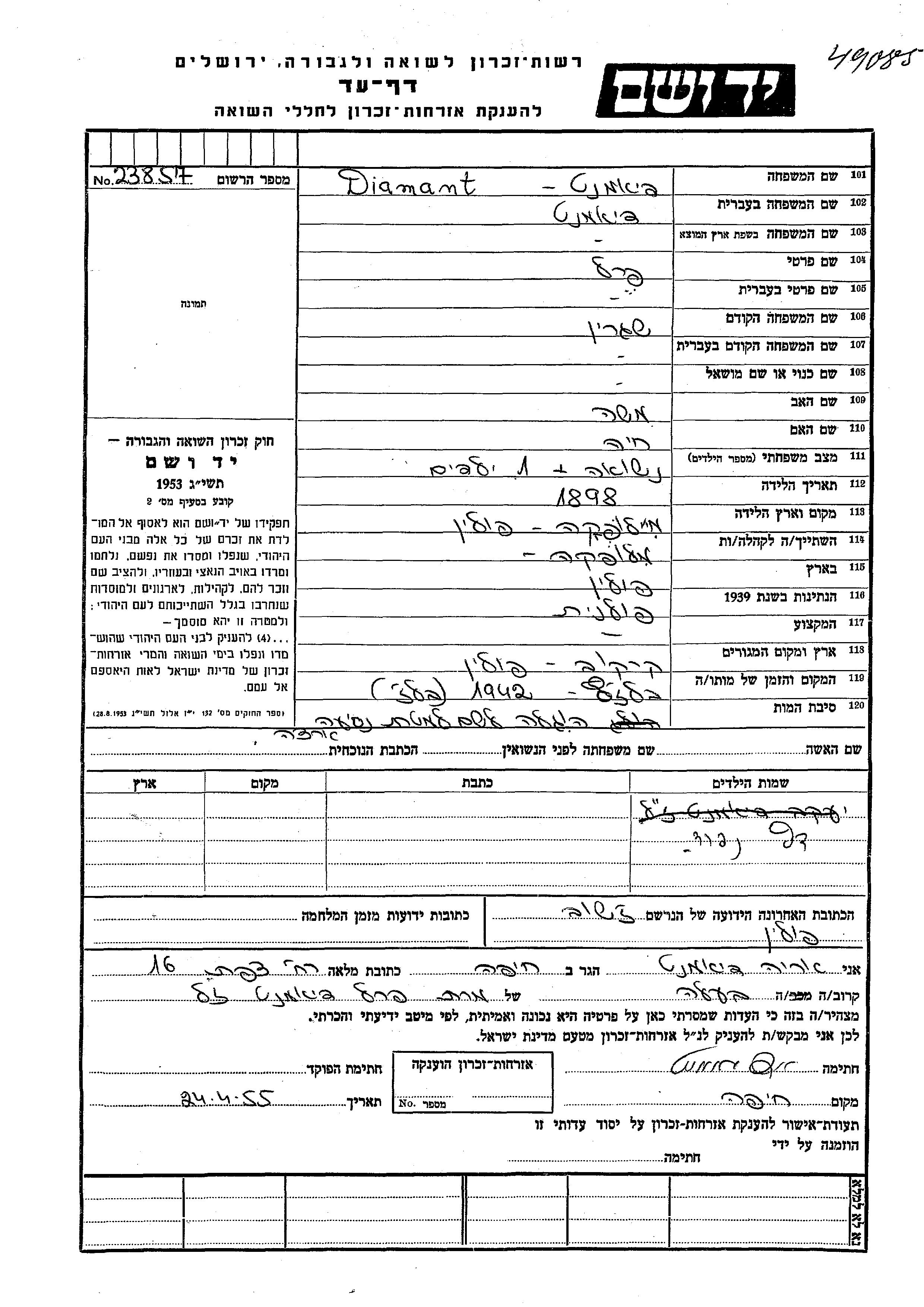 Perel wurde in der Schoah ermordet. Todesort: Belzec, Polen im Jahr 1942.