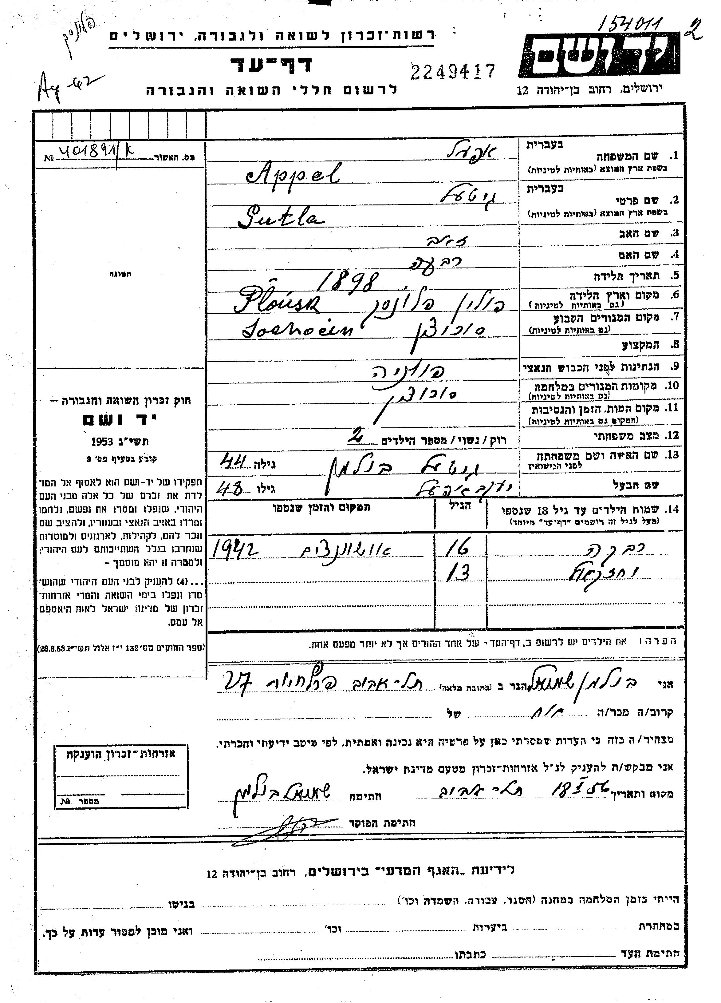 Appel | Mojsche Majer | 1890 | Gorlice, Polen | Gedenkblatt |