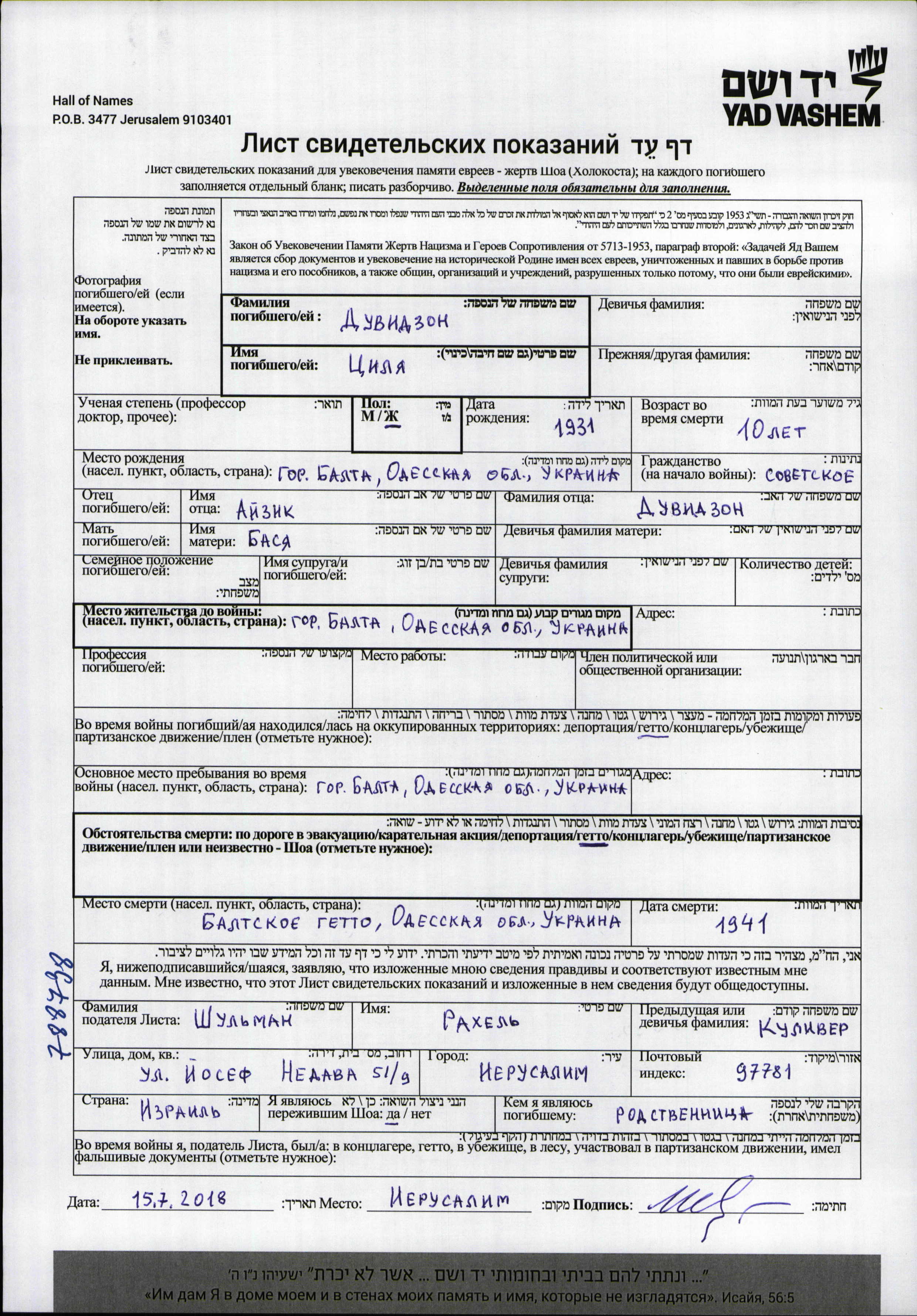 Tzilya wurde in der Schoah ermordet. Todesort: unbekannt im Jahr 1941.