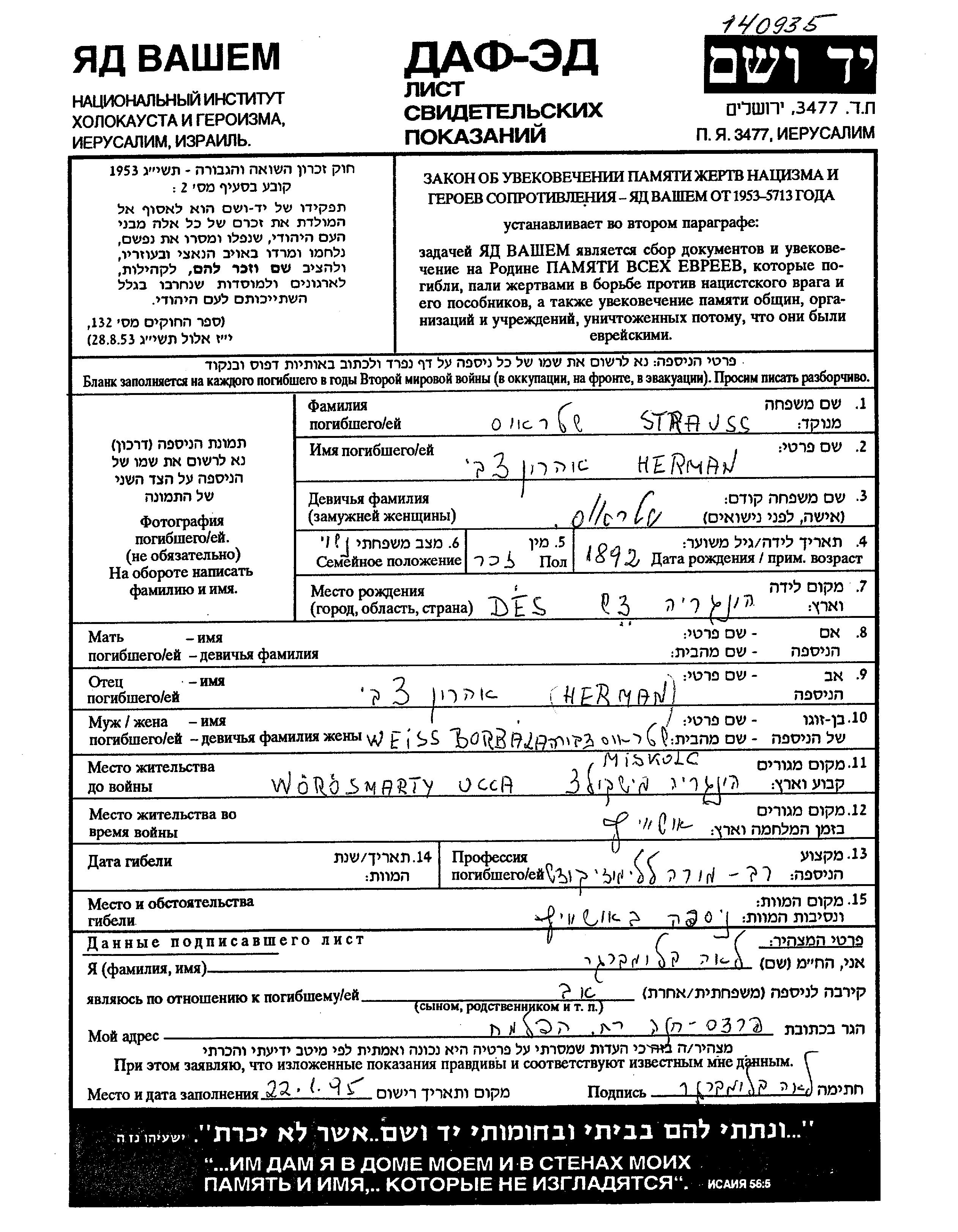 Ständiger Wohnsitz vor dem Krieg: Stadt/Ortschaft oder Bezirk/Region oder Land