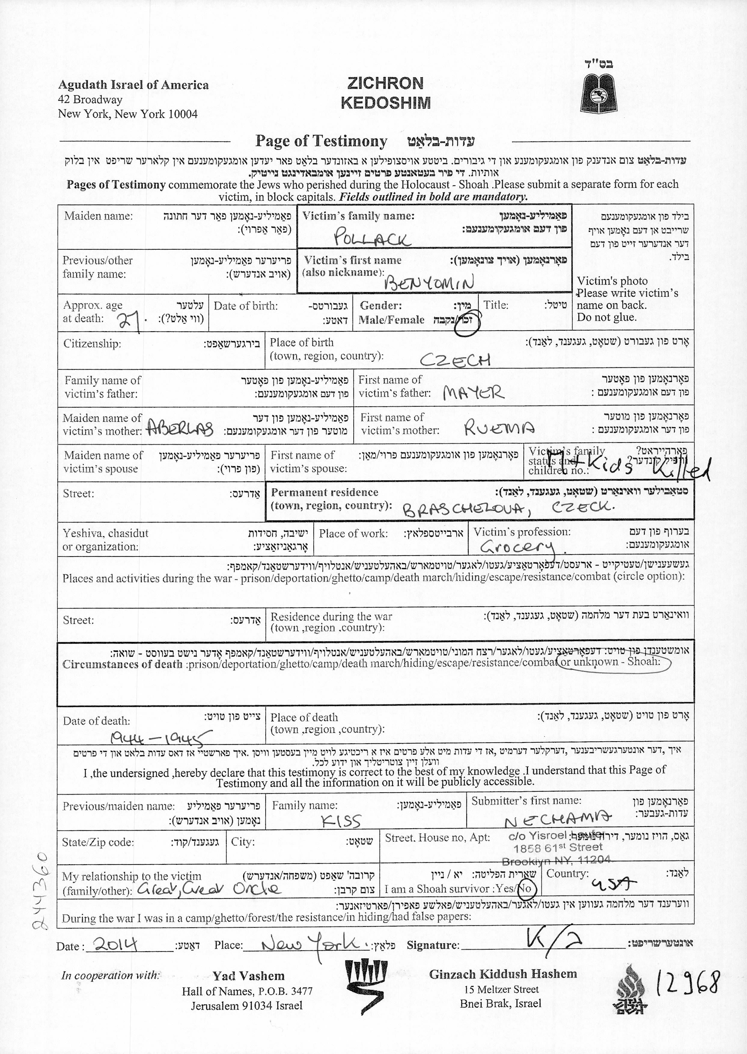 Suche nach dem Nachnamen des Einreichenden eines Gedenkblattes. Bei Frauen ist der Mädchenname mit einbezogen.