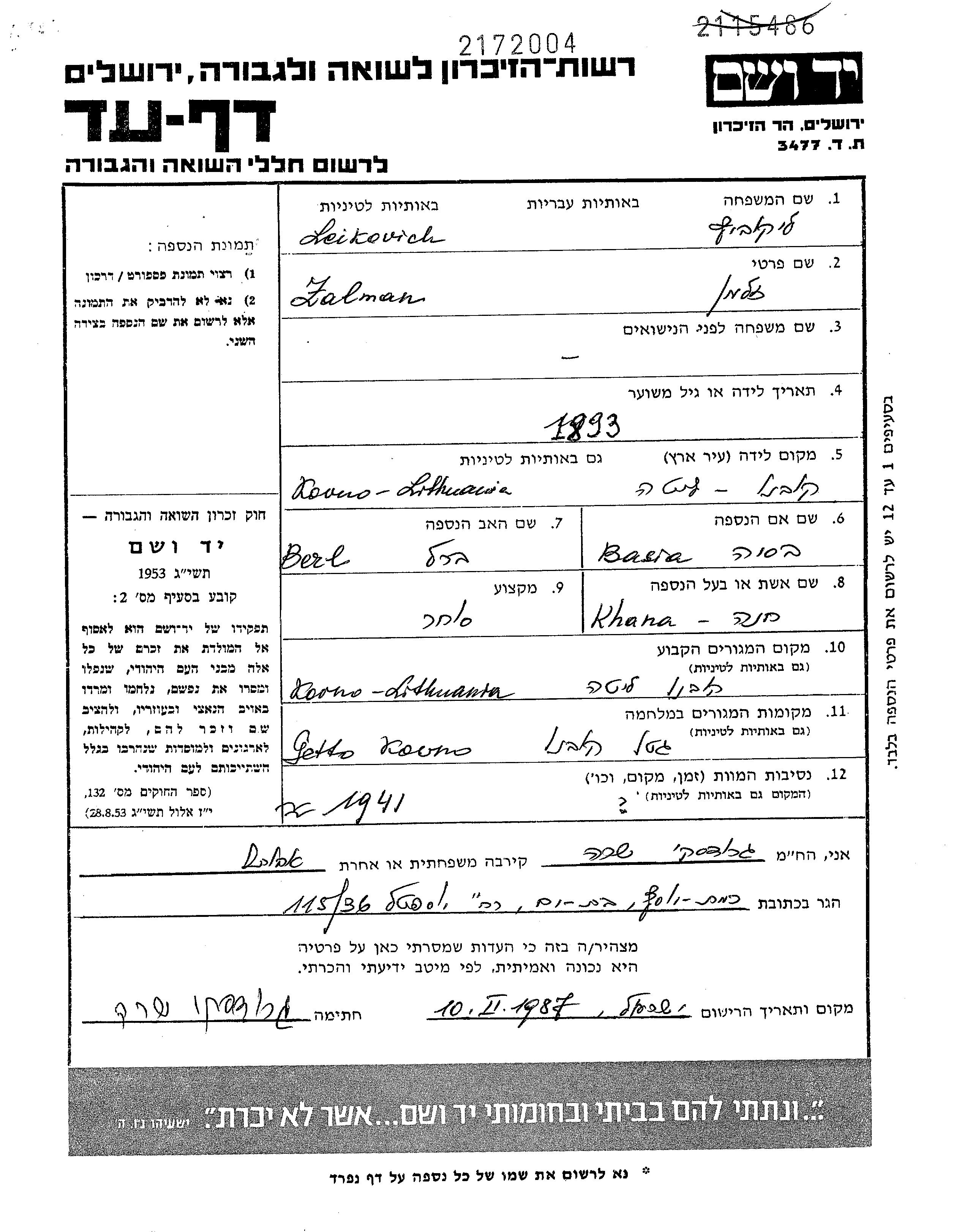Zalman wurde in der Schoah ermordet. Todesort: Kaunas, Litauen im Jahr 1941.