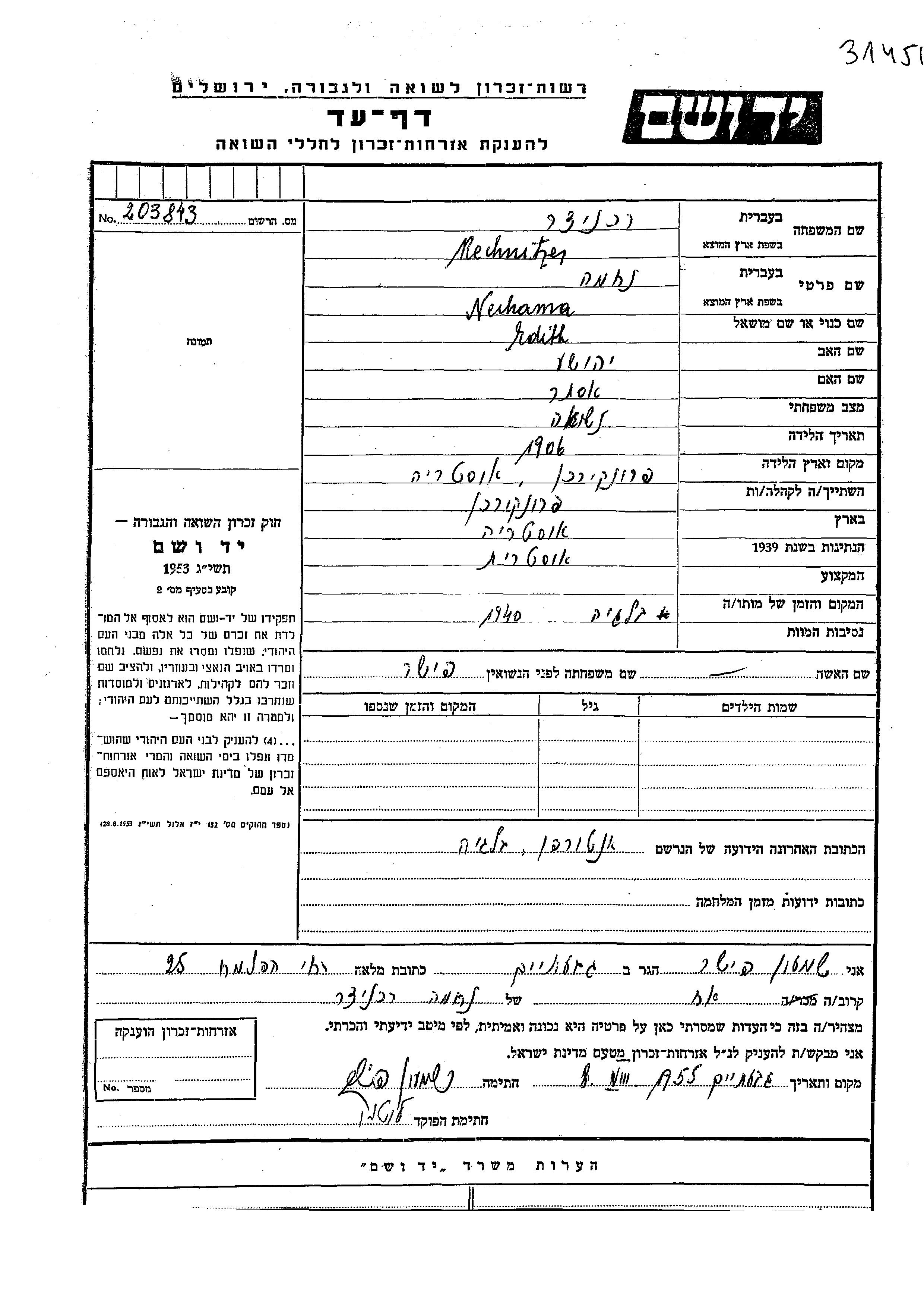 Rechnitzer Radnitzer Nechama 1906 unbekannter Ort, Gedenkblatt