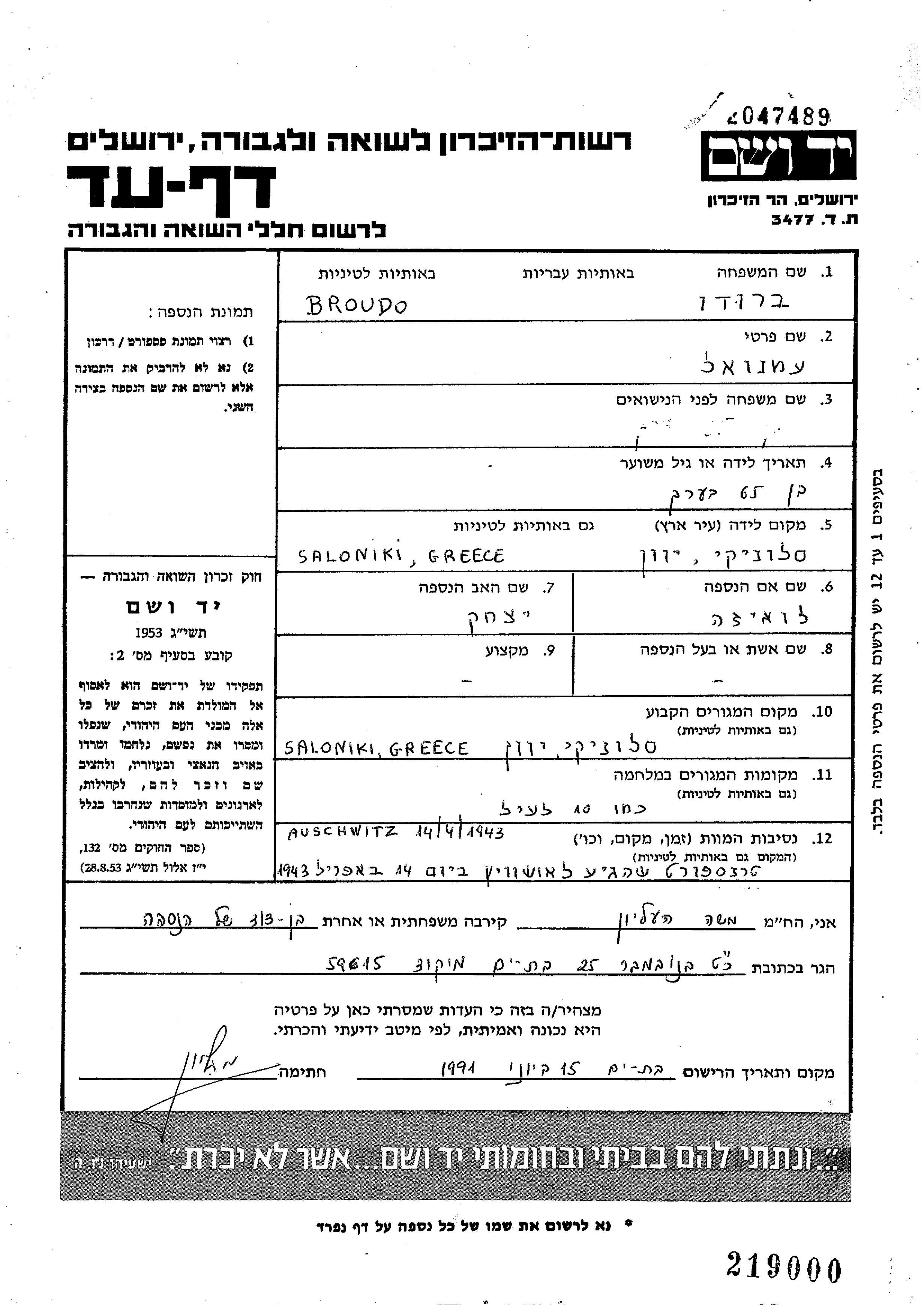 Brudo Emmanuel 1941 Thessaloniki, Griechenland Liste von ermordeten Personen