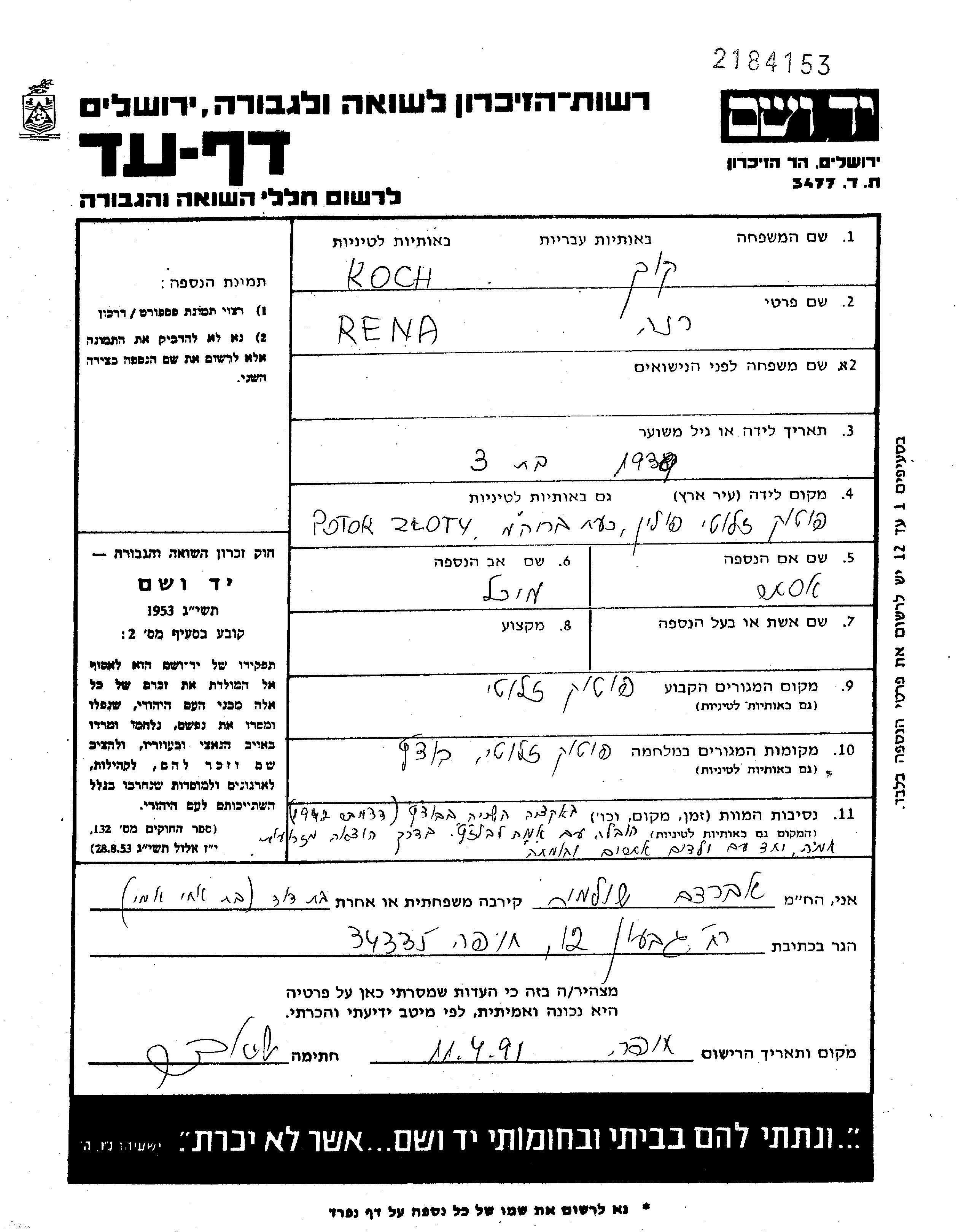 Rena wurde in der Schoah ermordet. Todesort: unbekannt im Jahr 1942.