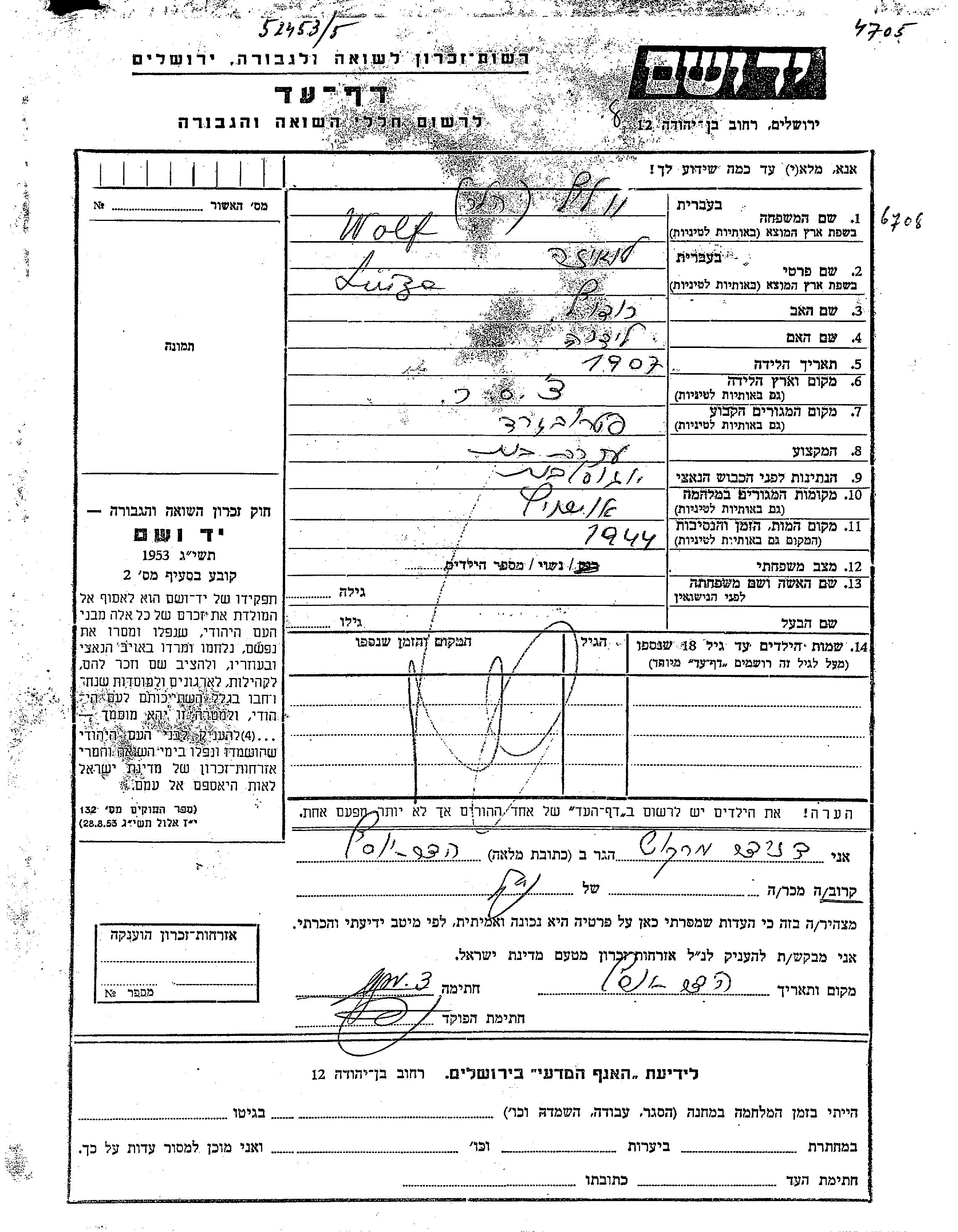 Wolf | Lujza | 1907 | Petrovgrad, Jugoslawien | Gedenkblatt |
