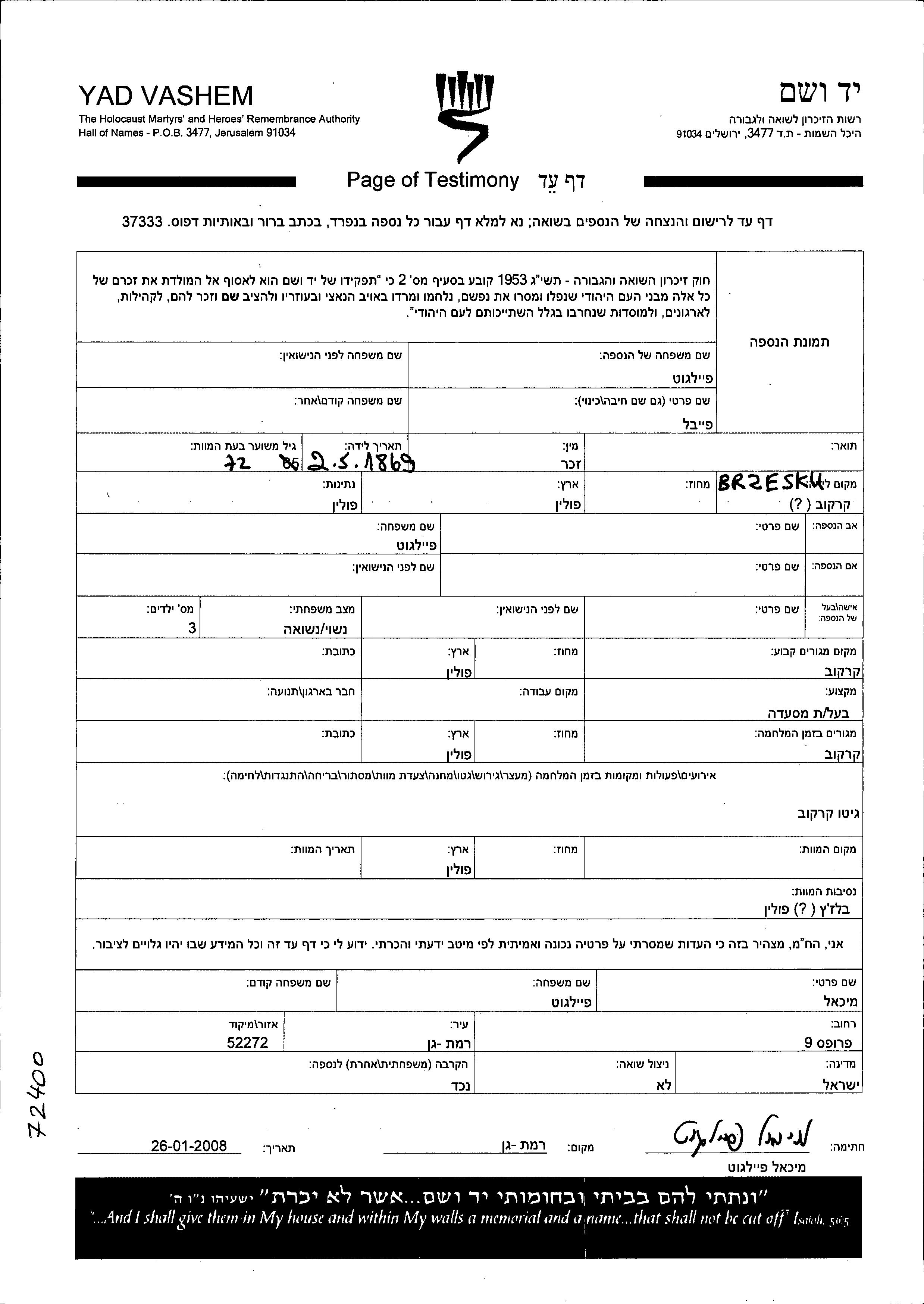 Feilgut Feiwel 1869 Krakow, Polen Verfolgtenliste