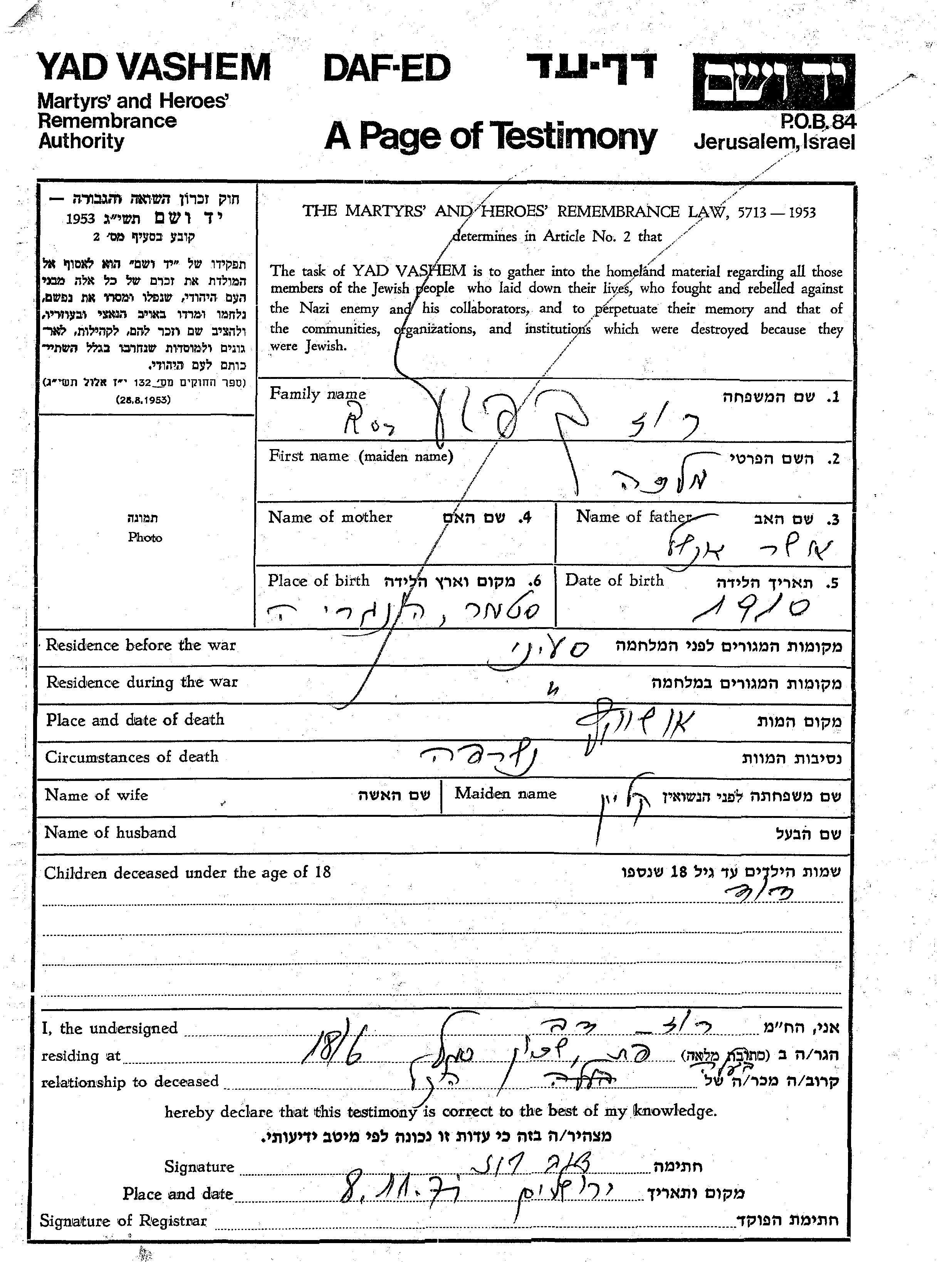 Suche nach einem Todesjahr im Zeitraum der Holocaust: 1933 bis 1945. Bitte wählen Sie 'Exakt' im Auswahlmenü, um nur nach einem einzelnen Jahr zu suchen, alternativ können Sie die flexibleren Optionen '+/- 2 Jahre' oder '+/- 5 Jahre' wählen.